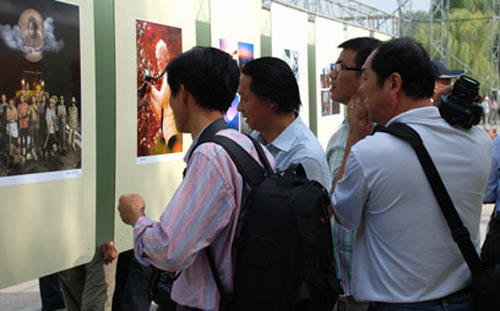 展覽在漢口江灘公園三峽石廣場(chǎng)舉辦,吸引了眾多市民前來參觀,是攝影家們?cè)凇半p節(jié)”奉獻(xiàn)給人民群眾的一道文化大餐。