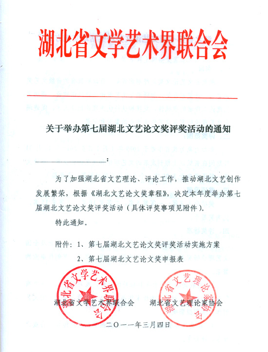 參加對象為我省作者于2009年1月1日至2010年12月31日期間在省級以上報刊發(fā)表的文藝?yán)碚摵臀乃囋u論文章,參評文章一般不得少于3000字,個人申報不超過兩篇(含兩篇)。