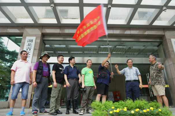 7月14日,湖北省攝影家協(xié)會主席團(tuán)成員組成抗洪搶險突擊隊,奔赴受災(zāi)嚴(yán)重的武漢市江夏區(qū)城關(guān)村,慰問一線攝影人員,拍攝災(zāi)后清理消毒、恢復(fù)生產(chǎn)場景。湖北省文聯(lián)黨組書記、常務(wù)副主席劉永澤出席了出發(fā)儀式并為突擊隊隊長、省攝協(xié)主席楊發(fā)維授旗。