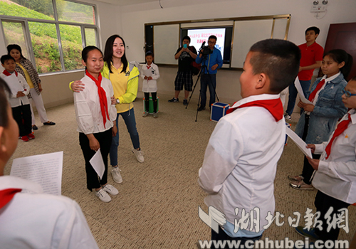文藝志愿者在堯治河小學(xué)進(jìn)行聲樂輔導(dǎo)。記者 劉濤攝