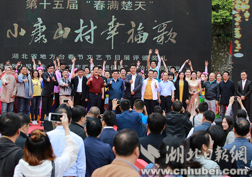 當(dāng)天上午,第十五屆“春滿楚天”湖北省地方臺春節(jié)文藝節(jié)目展評頒獎禮暨“到人民中去——藝術(shù)家走進(jìn)??怠蔽乃囍驹阜?wù)活動的新聞發(fā)布會,在??悼h馬橋鎮(zhèn)的堯治河村舉行。堯治河村從一個貧困的小山村,發(fā)展為如今的??凳赘淮?,也成為保康縣各村鄉(xiāng)親學(xué)習(xí)的榜樣。