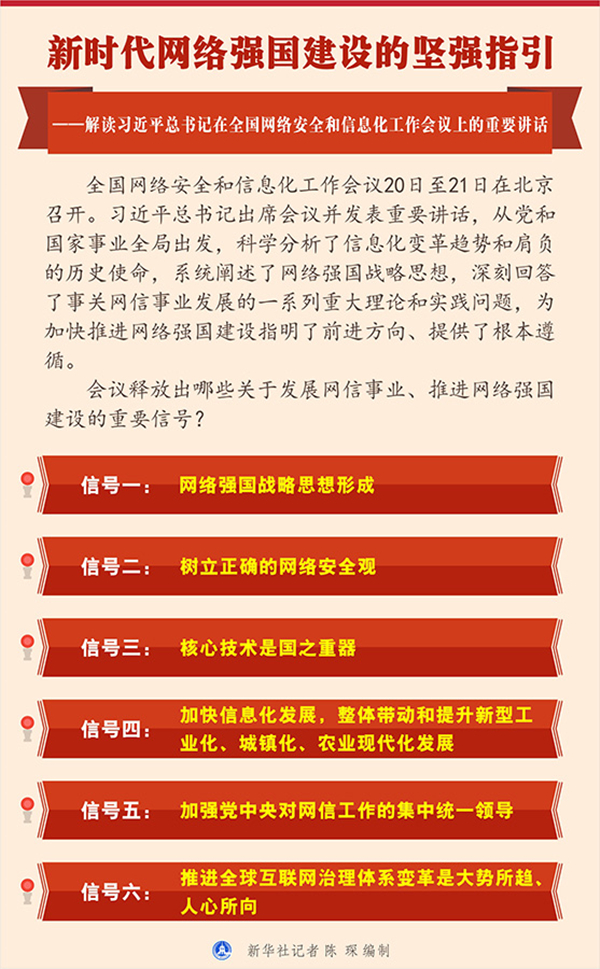 全國(guó)網(wǎng)絡(luò)安全和信息化工作會(huì)議20日至21日在北京召開(kāi)。習(xí)近平總書(shū)記出席會(huì)議并發(fā)表重要講話,從黨和國(guó)家事業(yè)全局出發(fā),科學(xué)分析了信息化變革趨勢(shì)和肩負(fù)的歷史使命,系統(tǒng)闡述了網(wǎng)絡(luò)強(qiáng)國(guó)戰(zhàn)略思想,深刻回答了事關(guān)網(wǎng)信事業(yè)發(fā)展的一系列重大理論和實(shí)踐問(wèn)題,為加快推進(jìn)網(wǎng)絡(luò)強(qiáng)國(guó)建設(shè)指明了前進(jìn)方向、提供了根本遵循。