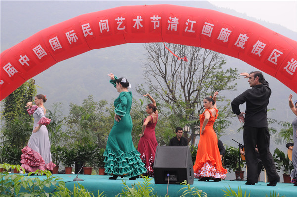 開幕式上,著名的埃及轉(zhuǎn)裙舞藝術(shù)團(tuán)、墨西哥“放聲高歌”合唱團(tuán)、波蘭瑪祖夫舍國家歌舞團(tuán)、俄羅斯彼特尼茨基國家模范藝術(shù)團(tuán)等獻(xiàn)上精彩表演。美國西部土風(fēng)舞、西班牙弗拉明戈舞蹈、中國土家族歌曲《喊山歌》等悉數(shù)亮相,引得現(xiàn)場觀眾連連叫好。