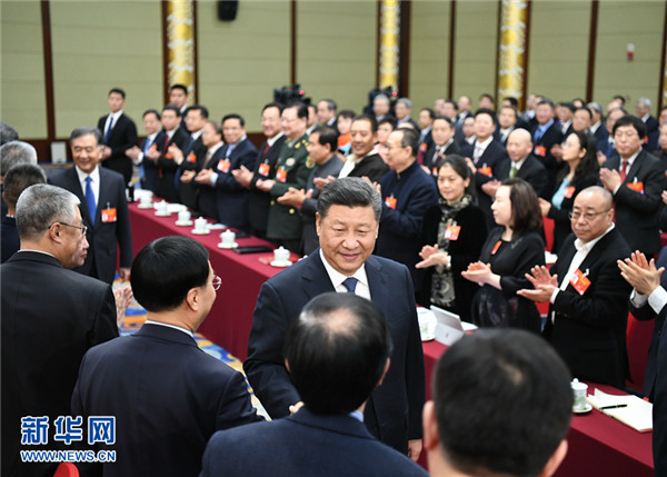 3月4日下午,中共中央總書記、國家主席、中央軍委主席習(xí)近平看望參加全國政協(xié)十三屆二次會議的文化藝術(shù)界、社會科學(xué)界委員,并參加聯(lián)組會,聽取意見和建議。中共中央政治局常委、全國政協(xié)主席汪洋參加看望和討論。新華社記者 謝環(huán)馳 攝