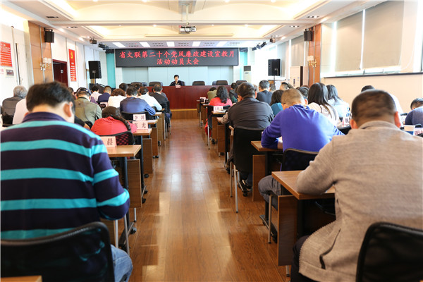 5月6日下午,省文聯(lián)召開第二十個黨風(fēng)廉政建設(shè)宣教月活動動員大會,省文聯(lián)黨組書記、常務(wù)副主席鄧長青出席大會,對省文聯(lián)宣教月活動進(jìn)行動員部署,并給文聯(lián)黨員干部講廉政黨課。省文聯(lián)黨組成員、副主席肖偉池主持會議,省文聯(lián)黨組成員、全體干部職工、今古傳奇企業(yè)負(fù)責(zé)人近90人參加會議。