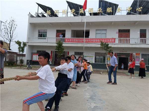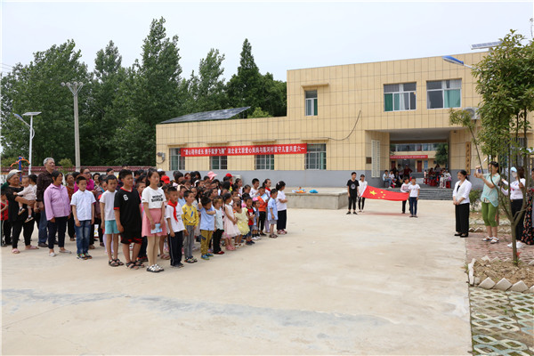 6月1日,陳河村村部廣場(chǎng)響起激昂的國(guó)歌聲,這里正在舉行升國(guó)旗儀式,省文聯(lián)愛心媽媽即將組織陳河村留守兒童開展趣味運(yùn)動(dòng)會(huì)。省文聯(lián)人事部主任周玲致辭并宣布運(yùn)動(dòng)會(huì)開幕。