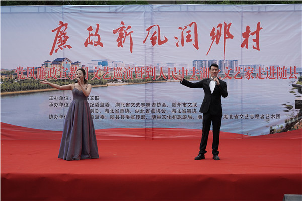 5月29日下午,廉政新風(fēng)潤(rùn)?quán)l(xiāng)村——黨風(fēng)廉政宣教月文藝巡演暨到人民中去 湖北文藝家走進(jìn)隨縣厲山鎮(zhèn)文藝志愿服務(wù)活動(dòng)舉行,隨縣縣直機(jī)關(guān)和厲山鎮(zhèn)干部群眾500多人觀看演出。