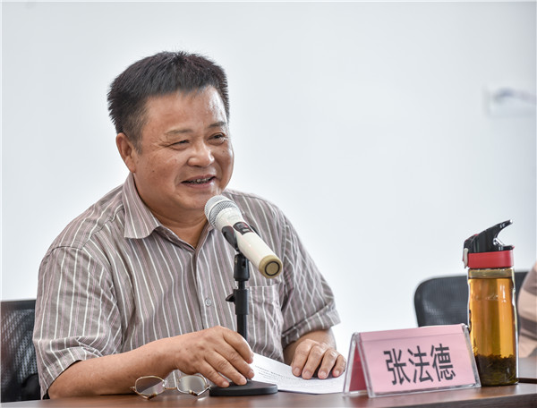 講課現(xiàn)場,省文聯(lián)文學藝術(shù)院院長鄭鳴向張法德頒發(fā)省文聯(lián)文學藝術(shù)院創(chuàng)作員聘書。