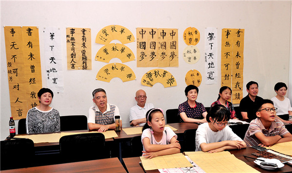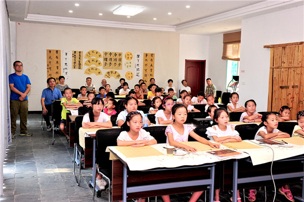指導(dǎo)組觀摩公益書法培訓(xùn)課現(xiàn)場(chǎng)