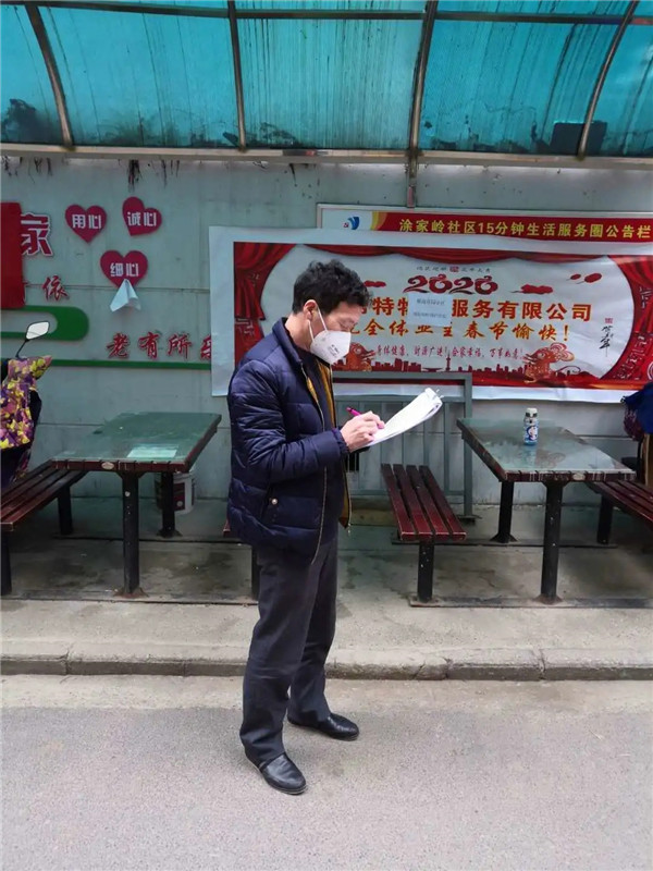 省文聯(lián)“黨員進(jìn)社區(qū)工作隊(duì)”隊(duì)員李從風(fēng)在涂家?guī)X社區(qū)登記出入人員信息