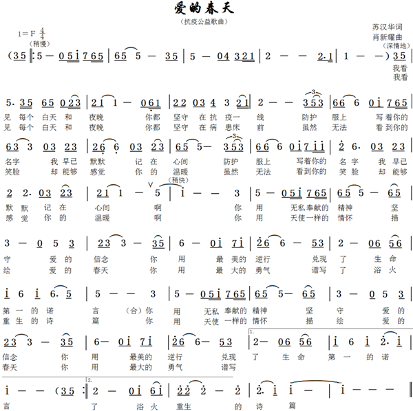 新冠肺炎疫情來勢洶洶,但無數(shù)白衣天使臨危不懼、逆行千里,在抗疫一線堅(jiān)守崗位、挽救生命。黃石市文藝工作者傾情創(chuàng)作戰(zhàn)疫歌曲《愛的春天》,向抗疫白衣天使致敬,感謝他們“用天使一樣的情懷,描繪愛的春天;用最大的勇氣,譜寫了浴火重生的詩篇。”