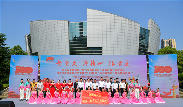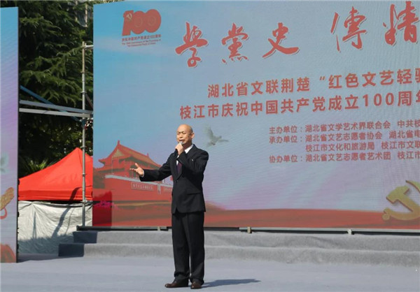 6月22日,學(xué)黨史 傳精神 跟黨走——湖北省文聯(lián)荊楚“紅色文藝輕騎兵”革命老區(qū)行在湖北省枝江市七星廣場舉行。省文聯(lián)黨組成員、副主席王永平,枝江市委書記賈立,市委副書記、市長余峰等出席活動。