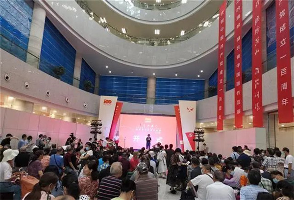 7月16日上午,由湖北省政協(xié)文化文史和學習委員會、湖北省文學藝術界聯(lián)合會主辦,湖北省國畫院承辦的“永遠的旗幟——慶祝中國共產(chǎn)黨成立100周年湖北省中國畫作品展”在湖北省圖書館隆重開幕。