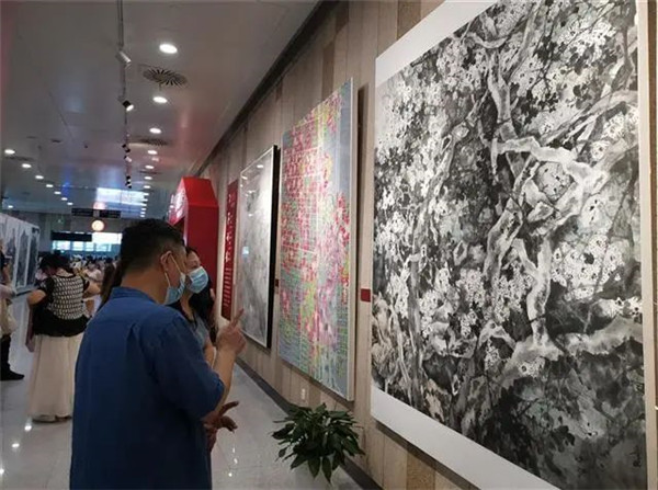 展覽以慶祝中國共產(chǎn)黨成立100周年為主題,分為“光輝歷程”“錦繡河山”“百花向陽”三個展覽單元,共展出127位湖北當?shù)刂袊嫯嫾业木妨ψ鳎宋镒髌访枥L了黨史上的多個重要人物和重大事件,山水、花鳥等題材的作品既傳承了傳統(tǒng)繪畫技法,又融合了多種當代風格的探索,展現(xiàn)了富有荊楚特色的中國畫創(chuàng)作新風貌,吸引不少中國畫愛好者前來觀展。