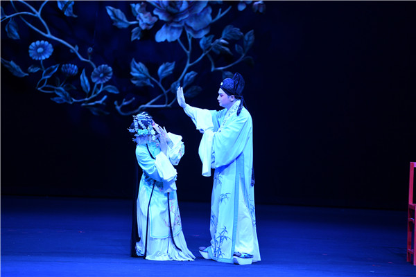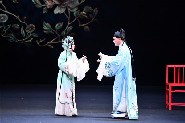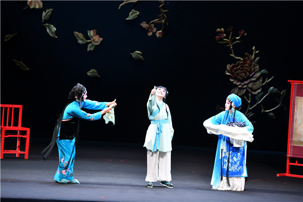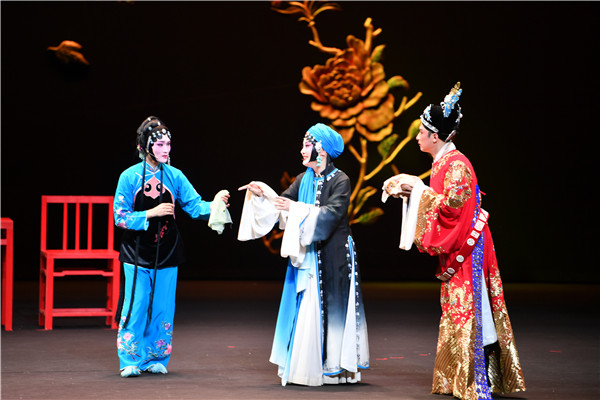 當(dāng)晚的演出中,程丞表演細(xì)膩淳樸、富有張力,唱腔古樸雋永、清麗婉轉(zhuǎn),把主角陳賽金豐富的情感層次和鮮明的個(gè)性演繹得淋漓盡致,她和其他演員們默契地配合、精彩的唱念做打不時(shí)贏得觀眾叫好鼓掌。
