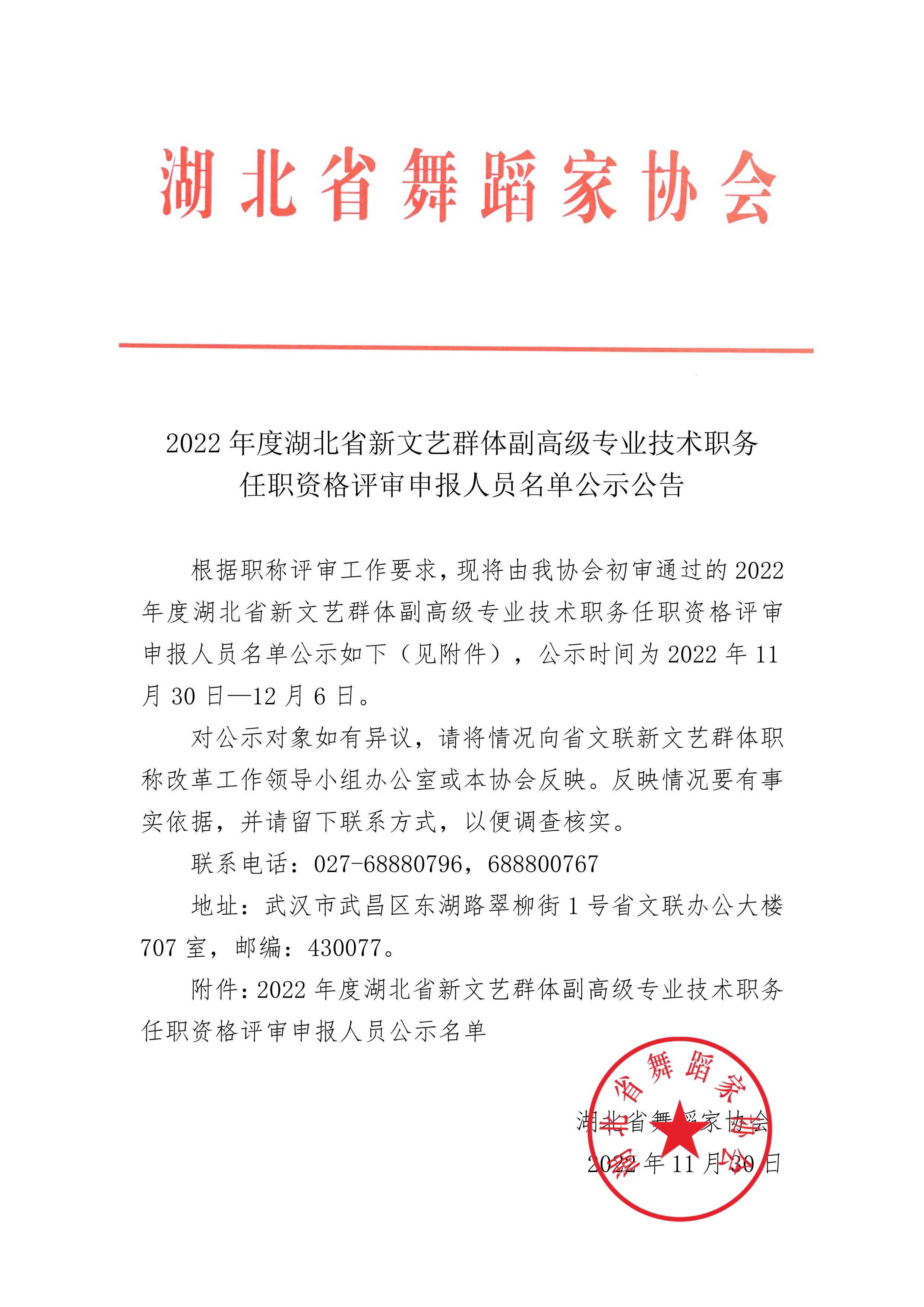 附件下載:2022年度湖北省新文藝群體副高級專業(yè)技術職務任職資格評審申報人員公示名單.xls