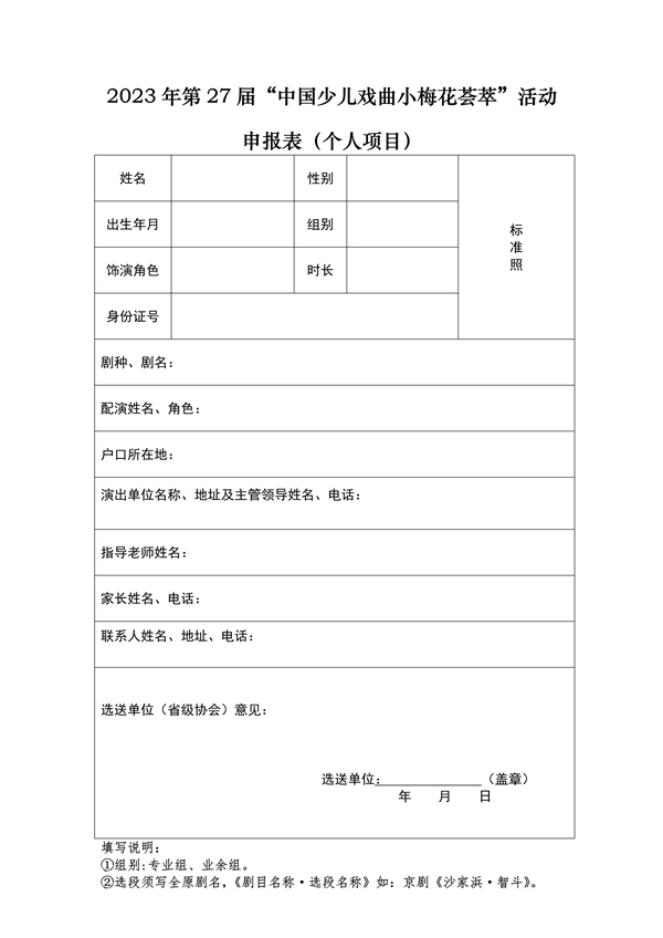 2023年第27屆“中國(guó)少兒戲曲小梅花薈萃”活動(dòng)申報(bào)表(個(gè)人項(xiàng)目).doc