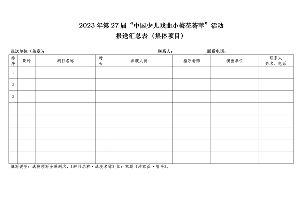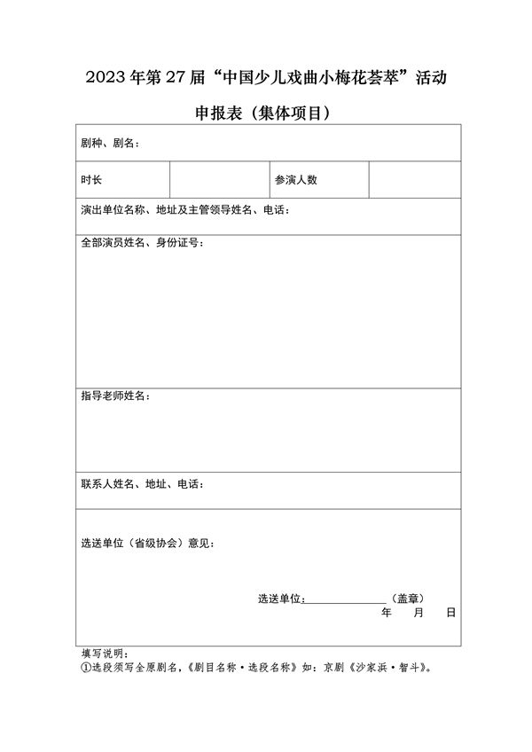 2023年第27屆“中國(guó)少兒戲曲小梅花薈萃”活動(dòng)申報(bào)表(集體項(xiàng)目).doc