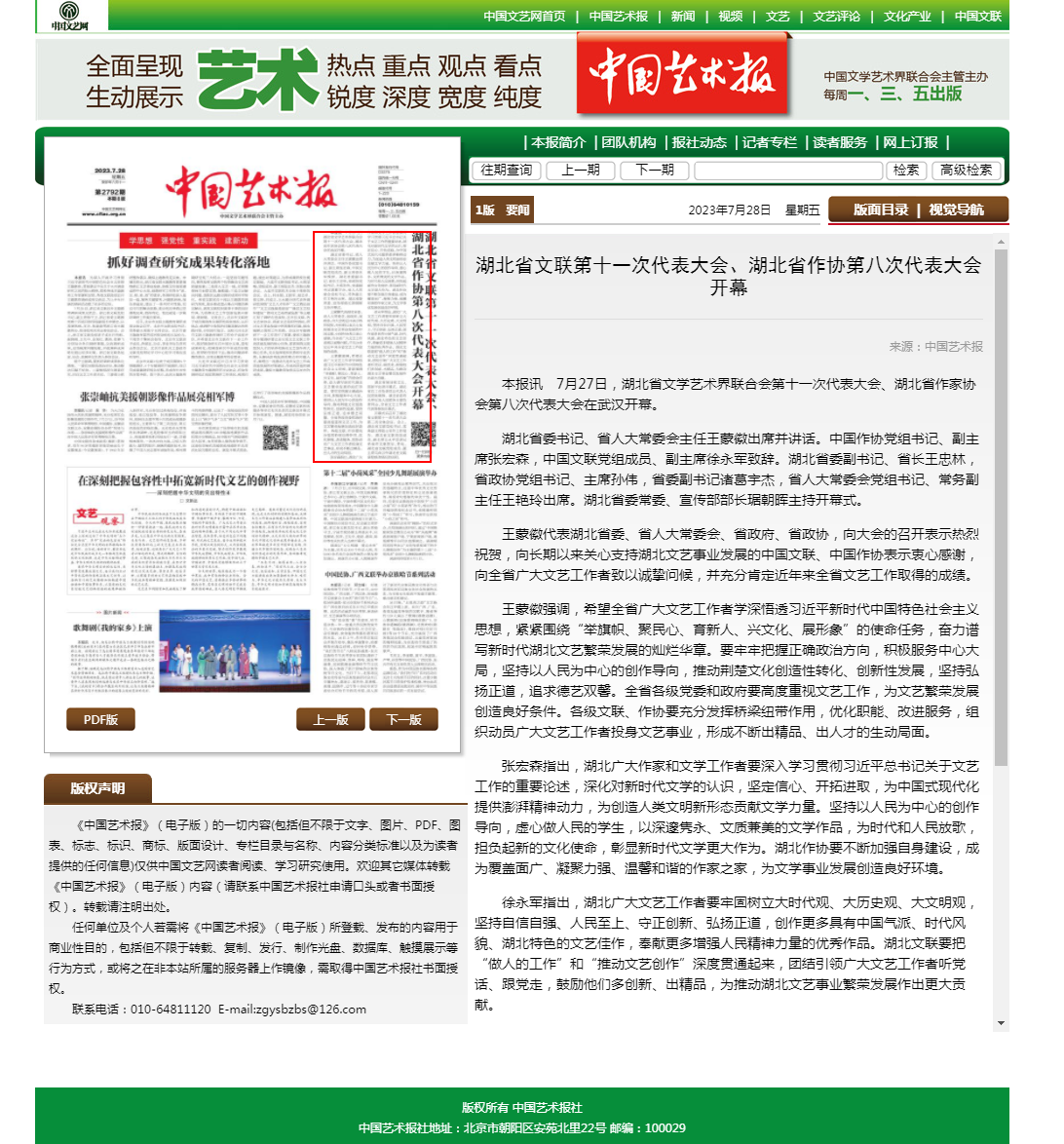 主辦單位:湖北省文學(xué)藝術(shù)界聯(lián)合會 技術(shù)支持:荊楚網(wǎng) 地址:湖北省武漢市武昌區(qū)東湖路翠柳街一號 聯(lián)系電話:027-68880703 留言信箱:[email protected] 郵政郵編:430071