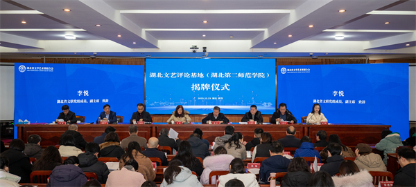 李悅在致辭中表示,為深入貫徹落實(shí)習(xí)近平文化思想,尤其是關(guān)于文藝評(píng)論工作的重要指示批示精神,推動(dòng)新時(shí)代湖北文藝評(píng)論工作高質(zhì)量發(fā)展。從2022年8月開始,湖北省文聯(lián)和湖北省評(píng)協(xié)面向全省啟動(dòng)實(shí)施了湖北文藝評(píng)論基地的申報(bào)和建設(shè)工作。到目前為止,已經(jīng)先后授牌中南民族大學(xué)、湖北民族大學(xué)、三峽大學(xué)等高校湖北文藝評(píng)論基地。近年來,湖北第二師范學(xué)院在推動(dòng)網(wǎng)絡(luò)藝術(shù)實(shí)踐、網(wǎng)絡(luò)文化研究和傳播、網(wǎng)絡(luò)文藝評(píng)論組織建構(gòu)等方面效果顯著、成果豐碩。學(xué)校建立了湖北高校重點(diǎn)人文研究基地“網(wǎng)絡(luò)文學(xué)研究所”,并憑借自身雄厚的學(xué)術(shù)資源和科研力量成功申報(bào)了一批國(guó)家社科基金項(xiàng)目、國(guó)家民委科研項(xiàng)目以及教育部人文社科基金項(xiàng)目。湖北第二師范學(xué)院作為我省第二批授牌湖北文藝評(píng)論基地的高校之一,希望基地守正創(chuàng)新、堅(jiān)持正確的方向?qū)?,充分發(fā)揮和利用好學(xué)校的特色優(yōu)勢(shì),整合資源、統(tǒng)籌合力,努力形成一批具有較強(qiáng)針對(duì)性、指導(dǎo)性、前瞻性的研究成果,將基地打造成學(xué)術(shù)特色鮮明、競(jìng)爭(zhēng)優(yōu)勢(shì)明顯、同行不可替代的文藝智庫(kù),不斷推動(dòng)文聯(lián)組織資源與高校學(xué)術(shù)資源、評(píng)論資源、師生資源深度融合,為繁榮發(fā)展湖北文藝事業(yè)貢獻(xiàn)文藝評(píng)論力量,為構(gòu)建新時(shí)代中國(guó)特色評(píng)論話語體系作出湖北貢獻(xiàn)。