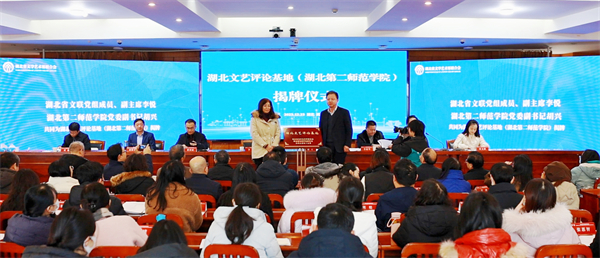 12月23日上午,湖北文藝評(píng)論基地(湖北第二師范學(xué)院)揭牌儀式暨新時(shí)代文藝評(píng)論建設(shè)與網(wǎng)絡(luò)文學(xué)高質(zhì)量發(fā)展研討會(huì)在湖北第二師范學(xué)院隆重舉行。湖北省文聯(lián)黨組成員、副主席李悅,湖北省作協(xié)黨組成員、副主席蔡家園,湖北第二師范學(xué)院黨委副書記胡興,湖北第二師范學(xué)院黨委常委、副校長(zhǎng)田恒平,湖北省文藝評(píng)論家協(xié)會(huì)副主席、武漢音樂學(xué)院教授李幼平,湖北省文藝評(píng)論家協(xié)會(huì)副主席、三峽大學(xué)文傳學(xué)院院長(zhǎng)劉波,中國(guó)作協(xié)網(wǎng)絡(luò)文學(xué)研究院研究員、安徽大學(xué)講席教授、中國(guó)文藝?yán)碚搶W(xué)會(huì)網(wǎng)絡(luò)文學(xué)分會(huì)副會(huì)長(zhǎng)馬季,中國(guó)作協(xié)網(wǎng)絡(luò)文學(xué)研究院副院長(zhǎng)、中國(guó)文藝?yán)碚搶W(xué)會(huì)網(wǎng)絡(luò)文學(xué)研究分會(huì)副會(huì)長(zhǎng)、杭州師范大學(xué)文化創(chuàng)意與傳媒學(xué)院教授夏烈,華中科技大學(xué)人文學(xué)院教授何錫章、李俊國(guó),華中師范大學(xué)文學(xué)院教授黎楊全,中南民族大學(xué)文學(xué)與傳播學(xué)院教授龔舉善,湖北第二師范學(xué)院科研處處長(zhǎng)肖明,湖北第二師范學(xué)院文學(xué)院黨總支書記庫(kù)文靜以及來自省內(nèi)高校、文藝期刊的部分專家學(xué)者代表出席揭牌儀式。湖北省文聯(lián)二級(jí)巡視員、湖北省文藝評(píng)論家協(xié)會(huì)駐會(huì)副主席李建華主持揭牌儀式。