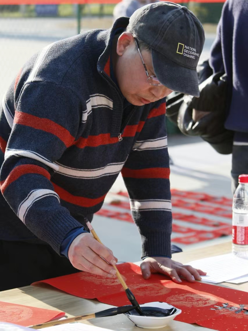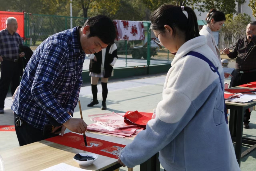 據(jù)省文聯(lián)負責(zé)人介紹,每年元旦和春節(jié)期間,都會組織荊楚“紅色文藝輕騎兵”開展文藝惠民“六進”活動,深入廣大機關(guān)、學(xué)校、軍營、醫(yī)院、企業(yè)、社區(qū),把春聯(lián)送到家門口,把祝福送到百姓中,這次走進湖北大學(xué)陽邏校區(qū)是為了給教師職工及社區(qū)居民帶來慰問和關(guān)懷?!傲?xí)近平總書記的文化思想中提到,創(chuàng)作要深入生活、扎根人民,為人民而寫為人民而書?!标惷魅A表示,希望通過寫春聯(lián)這種方式送給大家美好的祝福,營造更好的春節(jié)氛圍。