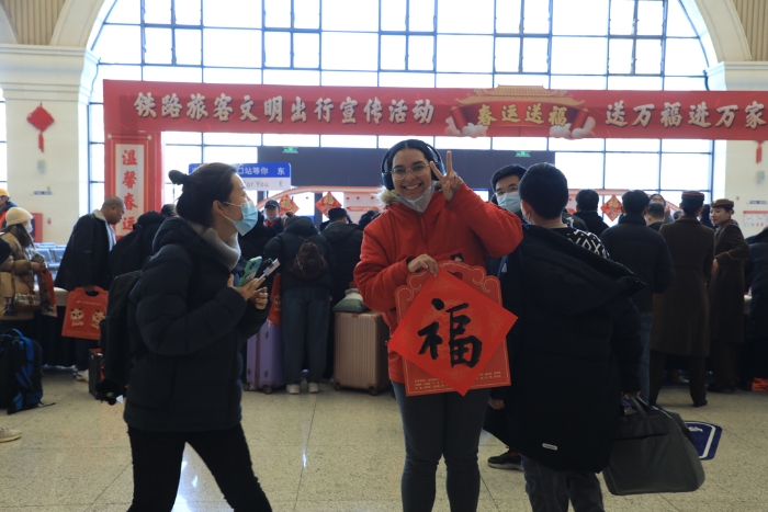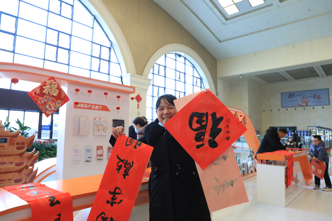 一位大爺說道:“這個活動真是貼近百姓,貼近生活,春運送春聯(lián),一路都是喜氣?!贝舜位顒油ㄟ^春運窗口弘揚中華優(yōu)秀傳統(tǒng)文化傳播社會主義精神文明,是以喜聞樂見的文藝形式溫暖群眾、深入生活、扎根人民的具體舉措。