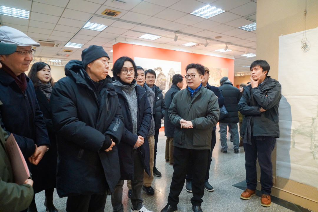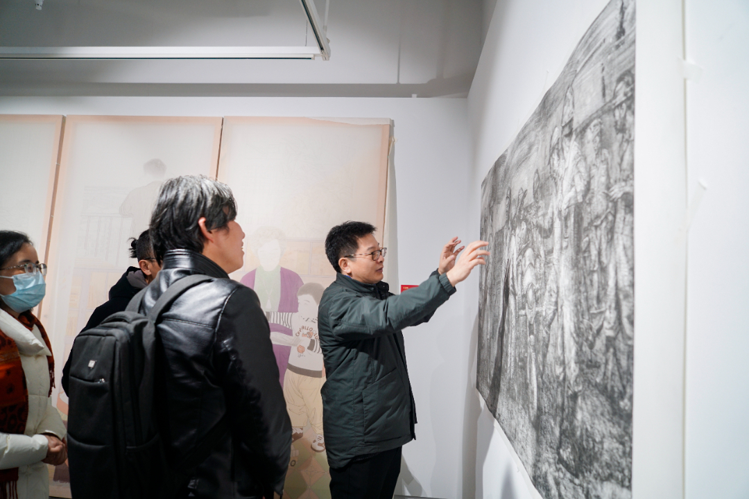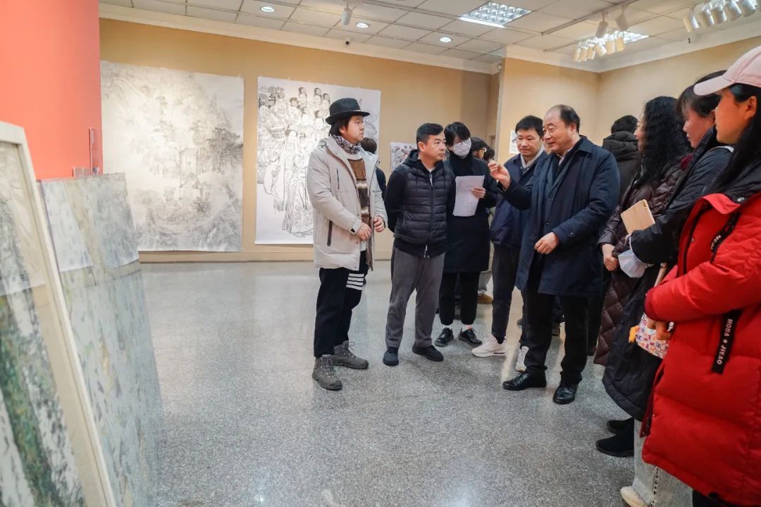 隨后專家組成員中國美協(xié)副主席李翔,中國美協(xié)分黨組成員、秘書長王平,中國美協(xié)中國畫藝委會委員、首都師范大學(xué)美術(shù)學(xué)院教授王珂,中國美協(xié)中國畫藝委會委員、福建省美協(xié)副主席梁明,中國美協(xié)中國畫藝委會委員、中國國家畫院美術(shù)館原館長、一級美術(shù)師方土,中國美協(xié)油畫藝委會委員、中國人民大學(xué)藝術(shù)學(xué)院院長、教授張淳,中國美協(xié)版畫藝委會副主任、中國美術(shù)學(xué)院教授張敏杰,中國美協(xié)水彩藝委會副主任、中國美院中國水彩畫研究中心主任、教授周剛,中國美協(xié)綜合材料繪畫與美術(shù)作品保存修復(fù)藝委會主任、中央美術(shù)學(xué)院教授胡偉,和隨行人員中國文聯(lián)美術(shù)藝術(shù)中心活動管理處副處長安明,中國文聯(lián)美術(shù)藝術(shù)中心網(wǎng)絡(luò)信息處干部趙天寧,在湖北美術(shù)院美術(shù)館和湖北美術(shù)學(xué)院曇華林校區(qū)美術(shù)館現(xiàn)場,針對不同繪畫類別,進(jìn)行了分組指導(dǎo)并與作者熱情交流。