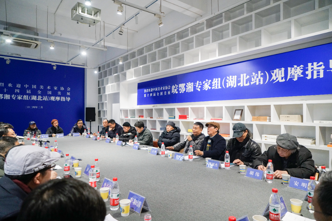 2月29日上午,中國美協(xié)第十四屆全國美展皖鄂湘專家組(湖北站)觀摩指導(dǎo)活動在武漢舉行。