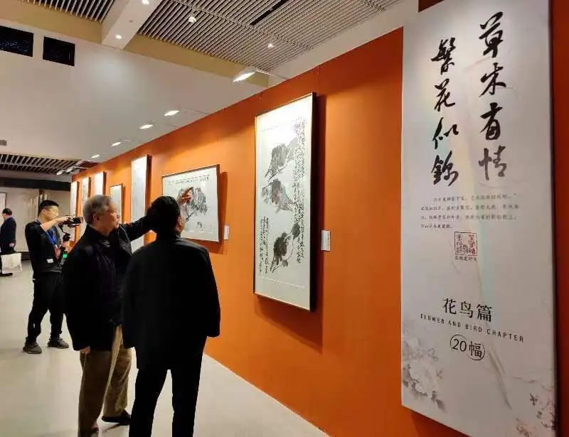 展覽按照不同主題和藝術(shù)形式,分為“綜合篇”“山水篇”“花鳥篇”“人物篇”“書法篇”五大篇章,每篇章均對應(yīng)配有篆刻作品,共展出5幅篆刻作品?!熬C合篇”展示文心墨韻,鳳鳴楚天,展出17幅作品;“山水篇”描繪荊山楚水,江河共美,展出18幅作品;“花鳥篇”呈現(xiàn)草木有情,繁花似錦,展出20幅作品;“人物篇”展現(xiàn)時(shí)代壯闊,英杰輩出,展出15幅作品?!皶ㄆ卑_翰墨萬象,國華重光,展出43幅作品。