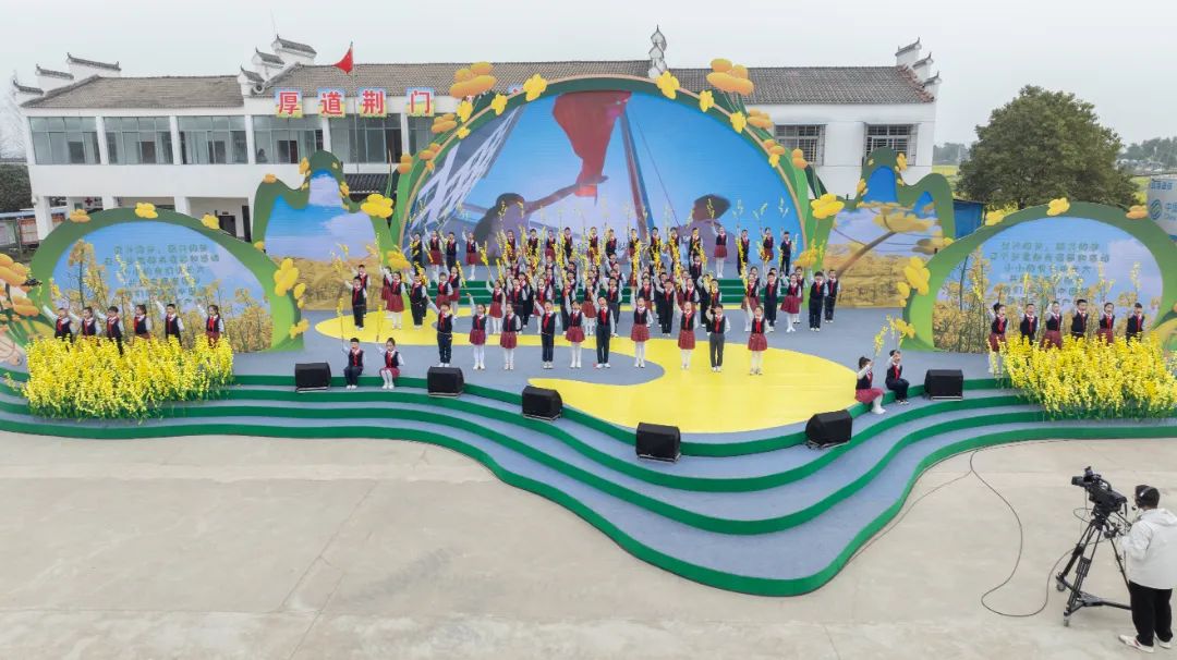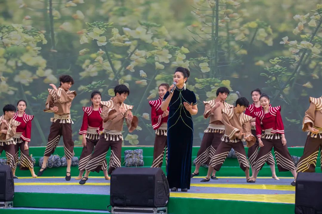 本場活動在沙洋漢上實驗學校帶來的童聲合唱《燦爛花海我的家》中拉開序幕。三月春起,少年們奮力歌唱的可愛姿態(tài)正如初抽的柳條一般生機勃勃充滿活力。該歌曲是此次活動專門為沙洋打造創(chuàng)作的歌曲,以沙洋特有的農(nóng)作景觀油菜花海為主題借景抒情,描繪了一幅田園詩鄉(xiāng),愛鄉(xiāng)戀鄉(xiāng)的燦爛春景。本場活動由湖北廣播電視臺首席導演、省電視藝術(shù)家協(xié)會駐會副主席兼秘書長郭光俊擔任藝術(shù)總監(jiān),湖北省文藝志愿者藝術(shù)團團長尤一心執(zhí)導,由湖北省最美文藝志愿者、湖北衛(wèi)視節(jié)目主持人段建海、劉熙燁,荊門九派通融媒體中心主持人黃韶光、裴思思聯(lián)袂主持,湖北省歌劇舞劇院伴舞。