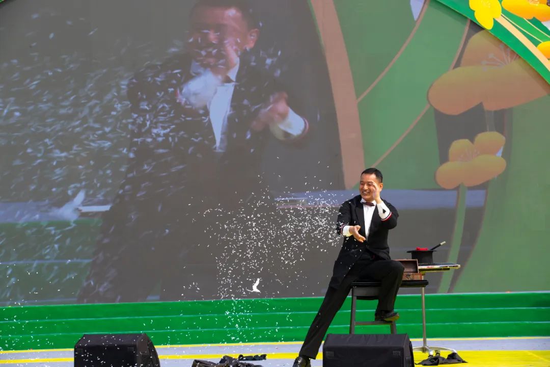 為大山譜出旋律,讓田野唱出新歌。此次活動的節(jié)目構(gòu)成共分為《美麗沙洋花如?!贰斗被ㄋ棋\美春光》《花開盛世譜新篇》三大篇章,主舞臺以油菜花的黃、綠為主色調(diào),梯田和花海的造型設(shè)計構(gòu)成了一個金色田野史詩風格,并在油菜花海中打造了頗具特色的第二會場,讓歌聲伴著花香縱情飛翔,節(jié)目上以春、花、樂三大元素貫穿整場演出,并以油菜花的視覺,音樂的聽覺、春天的嗅覺相互交融營造出歌甜花香的鄉(xiāng)村變奏曲。活動現(xiàn)場,由知名藝術(shù)家胡承忠、陳春茸、余景明、操奕恒、鄒一娜、羅仕江、門往、吳松濤、程丞、林楊帶來的歌曲《我們的祖國歌甜花香》《走進新農(nóng)村》《春風十萬里》、雜技《花式籃球NBA》、魔術(shù)《年年有余》、黃梅戲《對花》和青年歌手洪晶晶、蔡峰、樊誠、肖可欣帶來的鄉(xiāng)村音樂潮主題歌曲《為你歌唱》,以及沙洋本土星期七樂隊帶來的歌曲《相信自己》。高亢嘹亮的演唱、韻味十足的戲劇、驚險刺激的雜技、神秘莫測的魔術(shù)……一道道滋味非凡的“文藝大餐”令人食指大動,觀眾們看得如癡如醉,紛紛揮舞著手中的小巴掌大聲叫好!隨后而至的女子小組唱《豌豆巴角油菜花開》由華中師范大學音樂學院為本次活動重新編排,生動地展現(xiàn)了春回大地農(nóng)作物爭相盛開的美好畫面。