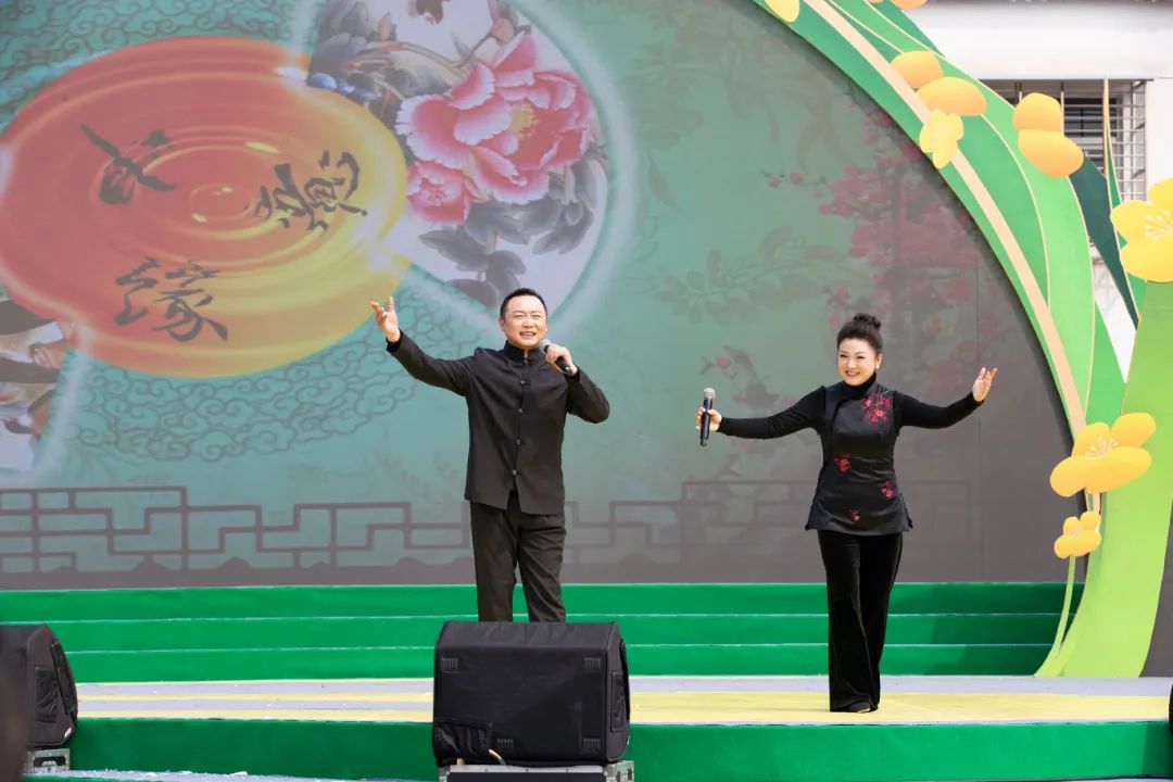 花漾農(nóng)谷好春光,踏歌起舞夢飛揚。由湖北省優(yōu)秀文藝志愿者、文化部全國第十五屆群星獎音樂類獲得者陳悅帶來的歌曲《花漾》受到了沙洋當?shù)赜^眾的一致認可與喜愛,該歌是由省內(nèi)著名詞作家黃念清作詞,著名作曲家王原平作曲的沙洋形象宣傳歌曲,歌詞中的漢水、楚簡、十里花海等元素,不僅折射出一個歷史悠久文化璀璨的沙洋,更是展現(xiàn)了獨屬于沙洋人民的驕傲。由中國戲劇梅花獎、文華獎獲得者、花鼓戲表演藝術(shù)家曾菊和稷山高臺花鼓藝術(shù)團帶來的花鼓聯(lián)演《十二月等郎 選段》《紅紅火火步步高》,親切質(zhì)樸的長江音律,醇厚利落的黃河韻味,舞臺上是長江黃河兩大流域花鼓文化間的對話與碰撞,現(xiàn)場氣氛火熱掌聲雷動!