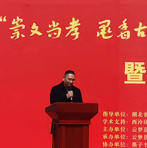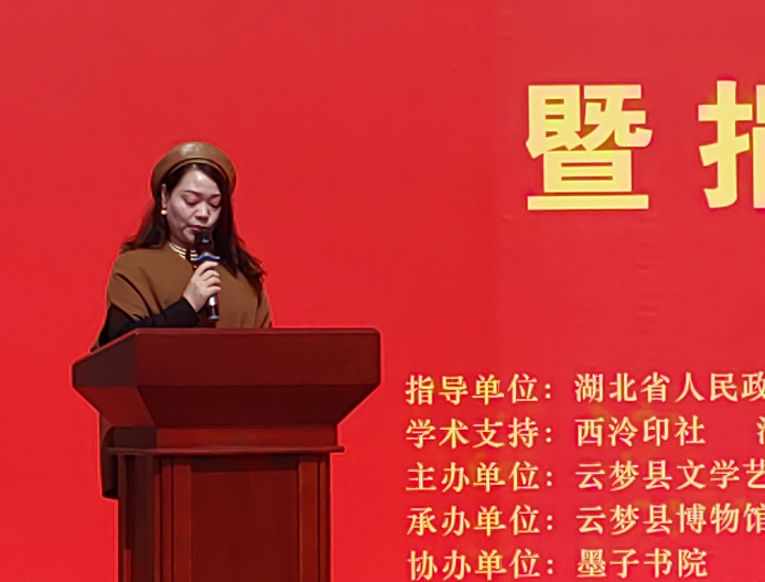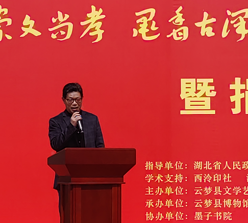 本次展覽由湖北省人民政府文史館、湖北省文聯(lián)指導(dǎo),西泠印社、湖北省書協(xié)、書法報(bào)社、湖北省書法院學(xué)術(shù)支持,云夢縣文聯(lián)、云夢縣文旅局主辦,云夢縣博物館、云夢縣硬筆書協(xié)承辦,共展出樊中岳書法篆刻作品、編著圖書、古文字文創(chuàng)產(chǎn)品、孝文化藝術(shù)藏品等200余件。