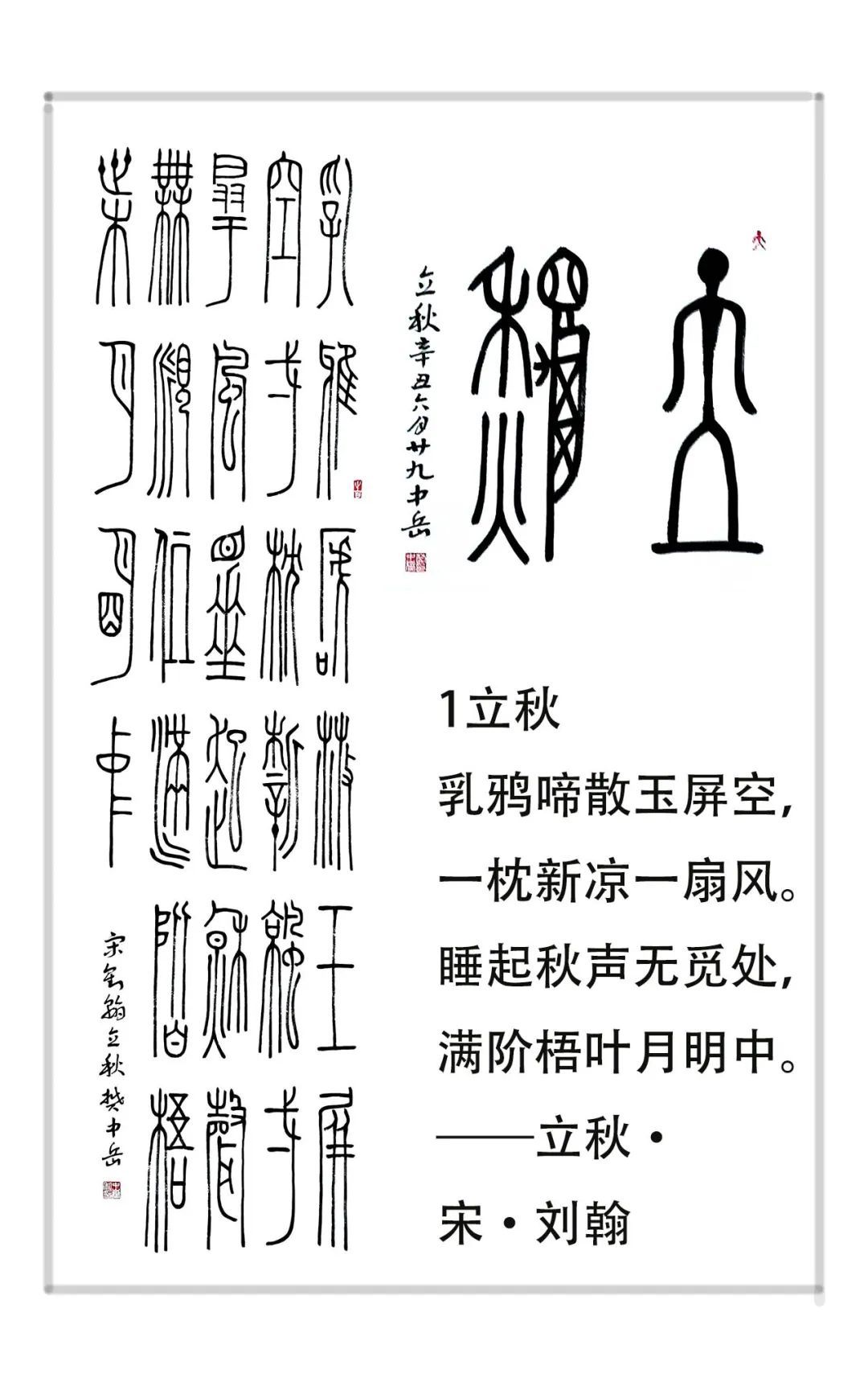 展覽共分三個(gè)主要版塊:其一“孝行天下 福滿人間”,以楚金文和章草兩種形式書寫《二十四孝》作品25件,篆刻印章24方。同時(shí),還展示部分關(guān)于二十四孝的實(shí)物,通過書法作品等形式倡導(dǎo)孝道;其二“知來明去 文化傳承”,展出以二十四節(jié)氣詩為主題的楚金文作品24件,臨《蔡侯申盤銘文》四條屏1件,體現(xiàn)了作者追求蔡侯申意趣的楚金文作品風(fēng)格及高度;其三“眾妙攸歸 墨彩凝眸”,展出作者近年篆書、章草、篆刻作品30余件。其中古文字合文、十二生肖圖形文字及拓片題跋是作者學(xué)習(xí)研究后創(chuàng)作的作品,已有一定的研究成果。
