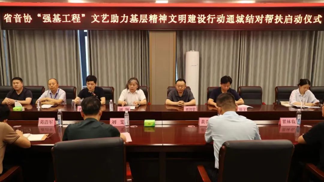 為深入學(xué)習(xí)貫徹黨的二十大精神和習(xí)近平文化思想,貫徹落實(shí)黨中央關(guān)于新時(shí)代文明實(shí)踐中心建設(shè)的部署,根據(jù)省文聯(lián)、省文明辦關(guān)于“強(qiáng)基工程”—文藝助力基層精神文明建設(shè)行動(dòng)工作部署,在全省各級(jí)文聯(lián)組織中廣泛開(kāi)展文明實(shí)踐文藝志愿服務(wù)活動(dòng),通過(guò)結(jié)對(duì)子、種文化,強(qiáng)基層、育文明等實(shí)踐活動(dòng),不斷夯實(shí)基層精神文明建設(shè)基礎(chǔ),“強(qiáng)基工程”文藝助力基層精神文明建設(shè)行動(dòng)暨省音協(xié)與通城縣新時(shí)代文明實(shí)踐中心結(jié)對(duì)幫扶啟動(dòng)儀式于6月23日在通城縣銀山文化藝術(shù)中心舉行,省音協(xié)優(yōu)秀詞曲作家與咸寧、通城籍詞曲作家代表結(jié)對(duì)幫扶。