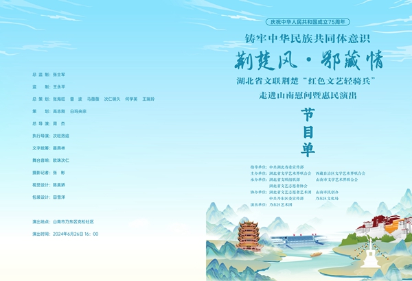 6月24日至7月1日,在廣袤的青藏高原,一場充滿溫情與感動的文藝援藏活動上演。“荊楚風(fēng)·鄂藏情”湖北省文聯(lián)荊楚“紅色文藝輕騎兵”不辭辛勞,跨越千山萬水,走進(jìn)了神秘而美麗的西藏山南。