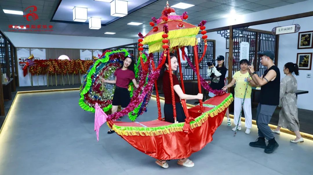 7月22號(hào)上午,走近璀璨明珠--潛江浩口古鎮(zhèn)。在浩口文化遺產(chǎn)綜合陳列館中,非遺文化彰顯歲時(shí)民俗、技藝傳承與詩文發(fā)展,學(xué)員們領(lǐng)略到豐富多姿的民俗風(fēng)情和上溯千年的浩口古史。隨后向老藝人研習(xí)舞龍、采蓮船,體驗(yàn)獨(dú)特的民俗之風(fēng)。