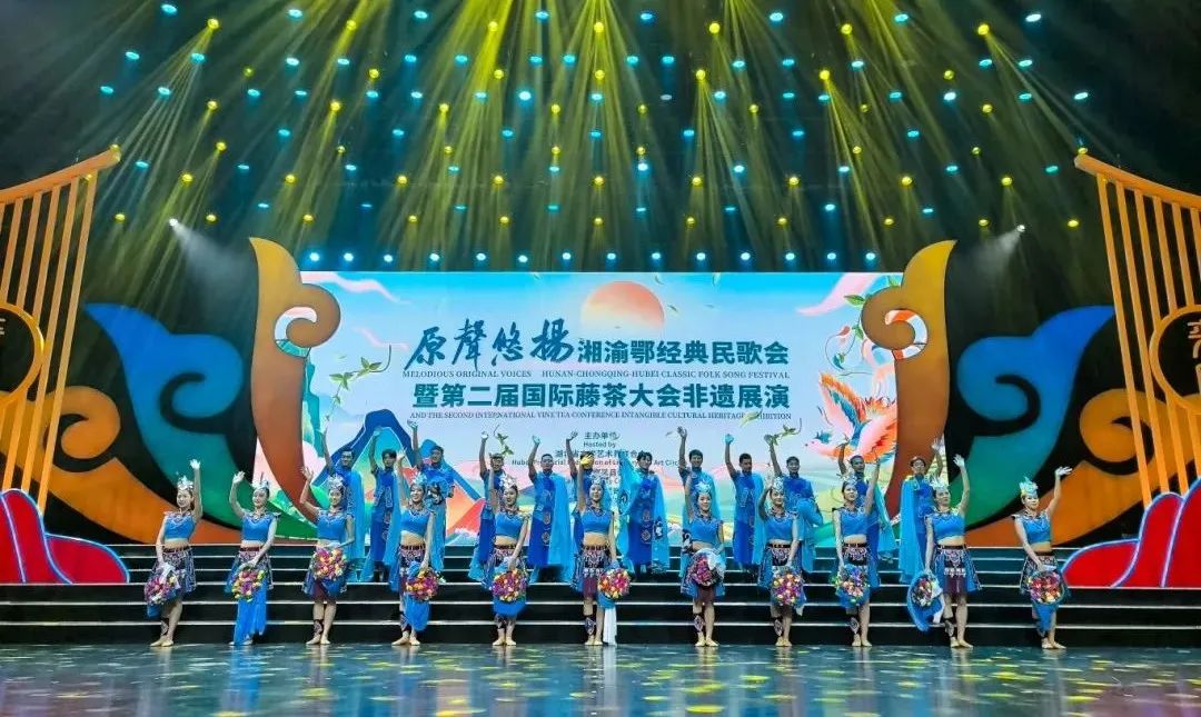 8月2日晚,“原聲悠揚(yáng)”湘渝鄂經(jīng)典民歌會(huì)暨第二屆國(guó)際藤茶大會(huì)非遺展演在來(lái)鳳成功舉辦。