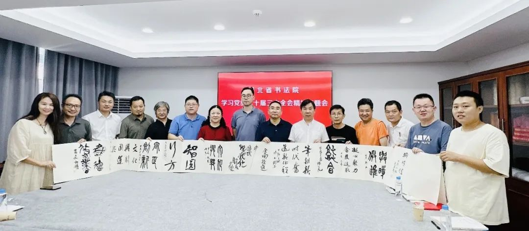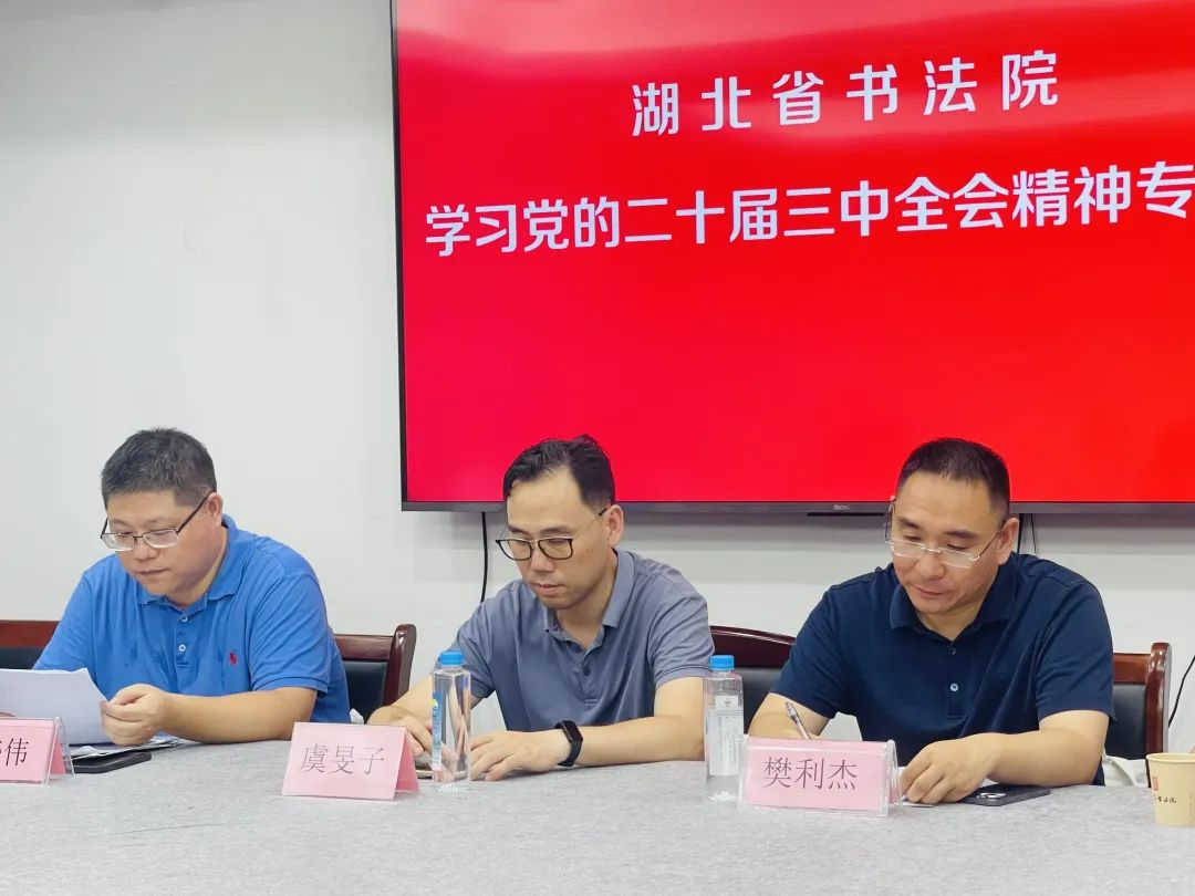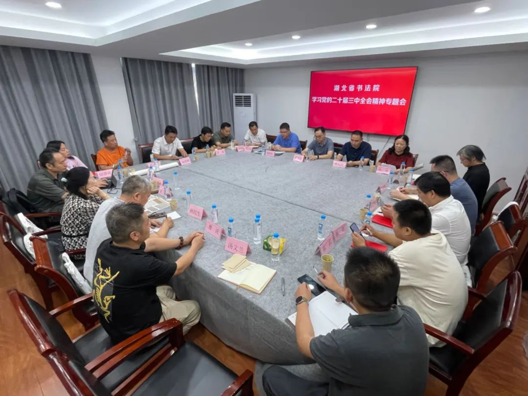 8月9日,湖北省書法院召開學(xué)習(xí)黨的二十屆三中全會精神專題會。湖北省文聯(lián)文學(xué)藝術(shù)院負(fù)責(zé)人虞旻子出席會議并講話,湖北省書法院副院長樊利杰、綜合辦公室主任魏曉偉、辦公室干事陳武,書法家郭衍槐、秦元昌、虞立新、敖啟權(quán)、張尤、葛振亮、王泉、張助剛、韓勇、馬金海,湖北省書法院志愿者湯文蘭、顧民生、宋虹、湯浩、余丹、曹慶等人出席專題會。會議由樊利杰主持。