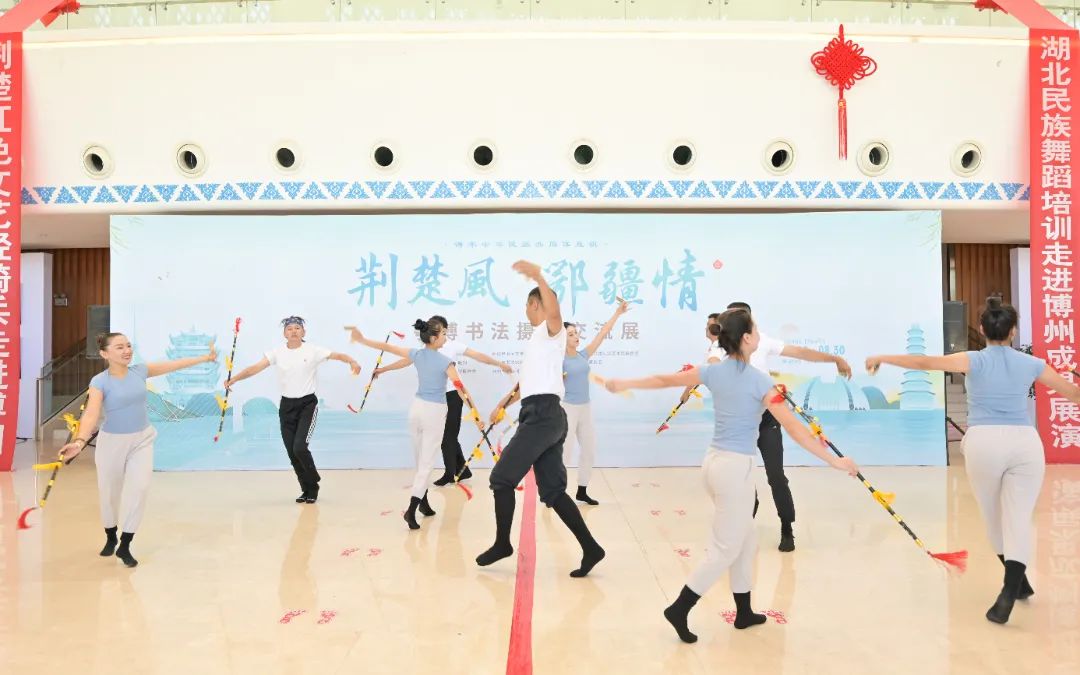 此次交流活動聚焦湖北援助博州25周年,民族團結(jié)取得的共同進步和人民群眾的幸福美好生活,通過書法攝影主題展覽、湖北民族舞蹈培訓及成果展演、書畫交流、荊楚“紅色文藝輕騎兵”小分隊慰問、惠民演出等方式,展示湖北、新疆的大美風光、人文風貌、時代風尚和民族特色藝術,講述民族交融的中國故事,進一步助推湖北與新疆博州兩地文化廣泛交往、全面交流、深度交融。博州黨委常委、宣傳部部長張莉英,博州副州長、湖北省援疆工作前方指揮部副總指揮宋濤,第五師雙河市黨委常委、副政委,宣傳部部長郭曉軍等領導出席了相關活動。