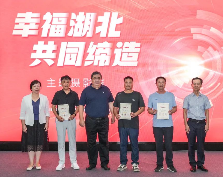 湖北省文聯(lián)主席團委員、省攝影家協(xié)會主席楊發(fā)維,湖北省文化和旅游廳公共服務(wù)處處長羅罡,湖北省圖書館黨委書記、館長劉偉成,為“幸福湖北 共同締造”主題攝影展入展作者代表肖高東、李仕力、王衛(wèi)華頒發(fā)證書