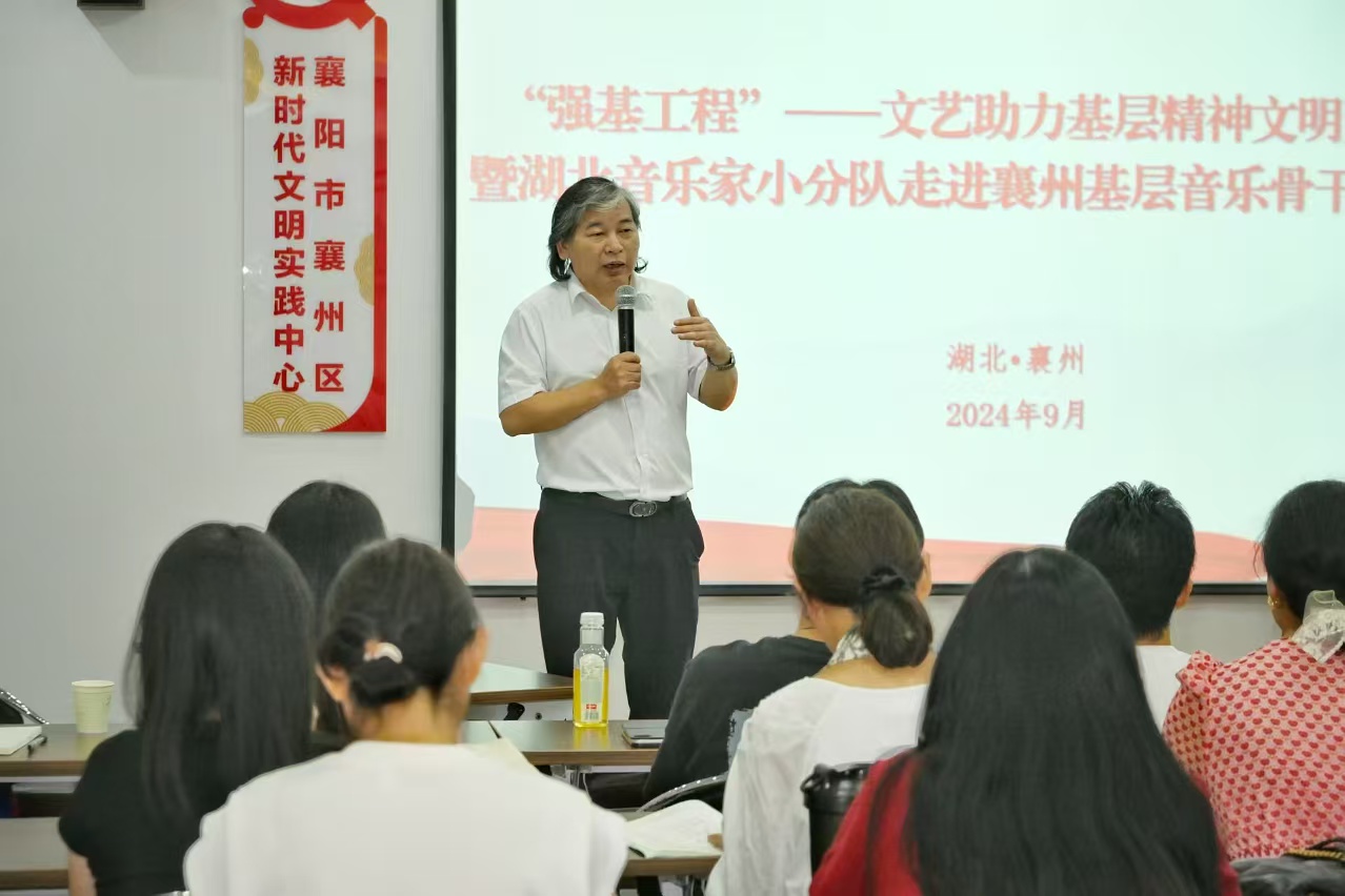 9月20日,省文聯(lián)學習宣傳黨的二十屆三中全會精神 “強基工程”——文藝助力基層精神文明建設行動暨湖北音樂家小分隊走進襄州基層音樂骨干輔導培訓班在襄州區(qū)新時代文明實踐中心舉行。湖北省音樂家協(xié)會駐會副主席劉翔,襄陽市文聯(lián)黨組成員、副主席任偉,湖北省音樂家協(xié)會秘書長張磐,襄陽市襄州區(qū)文聯(lián)主席王丹丹出席開班儀式。