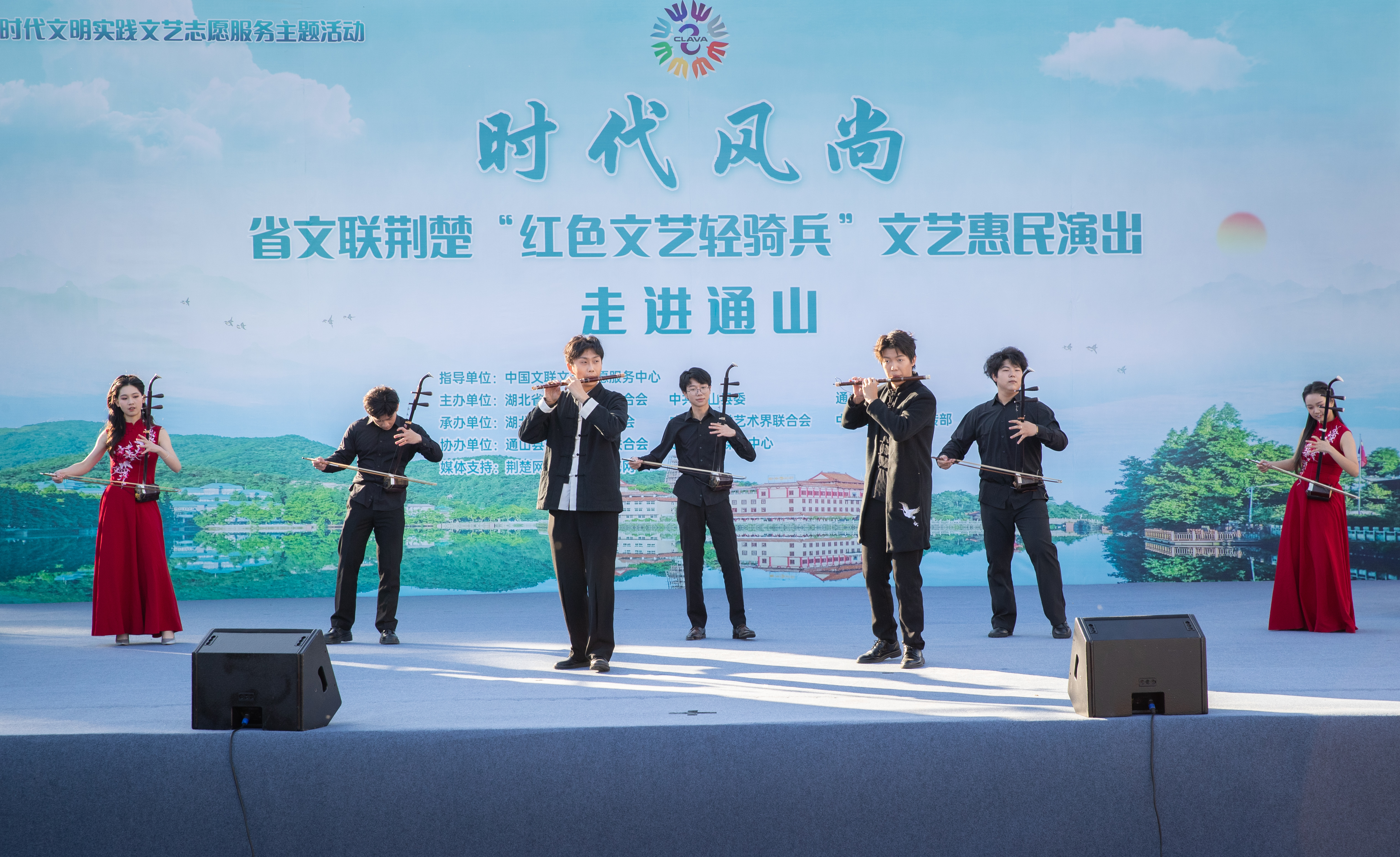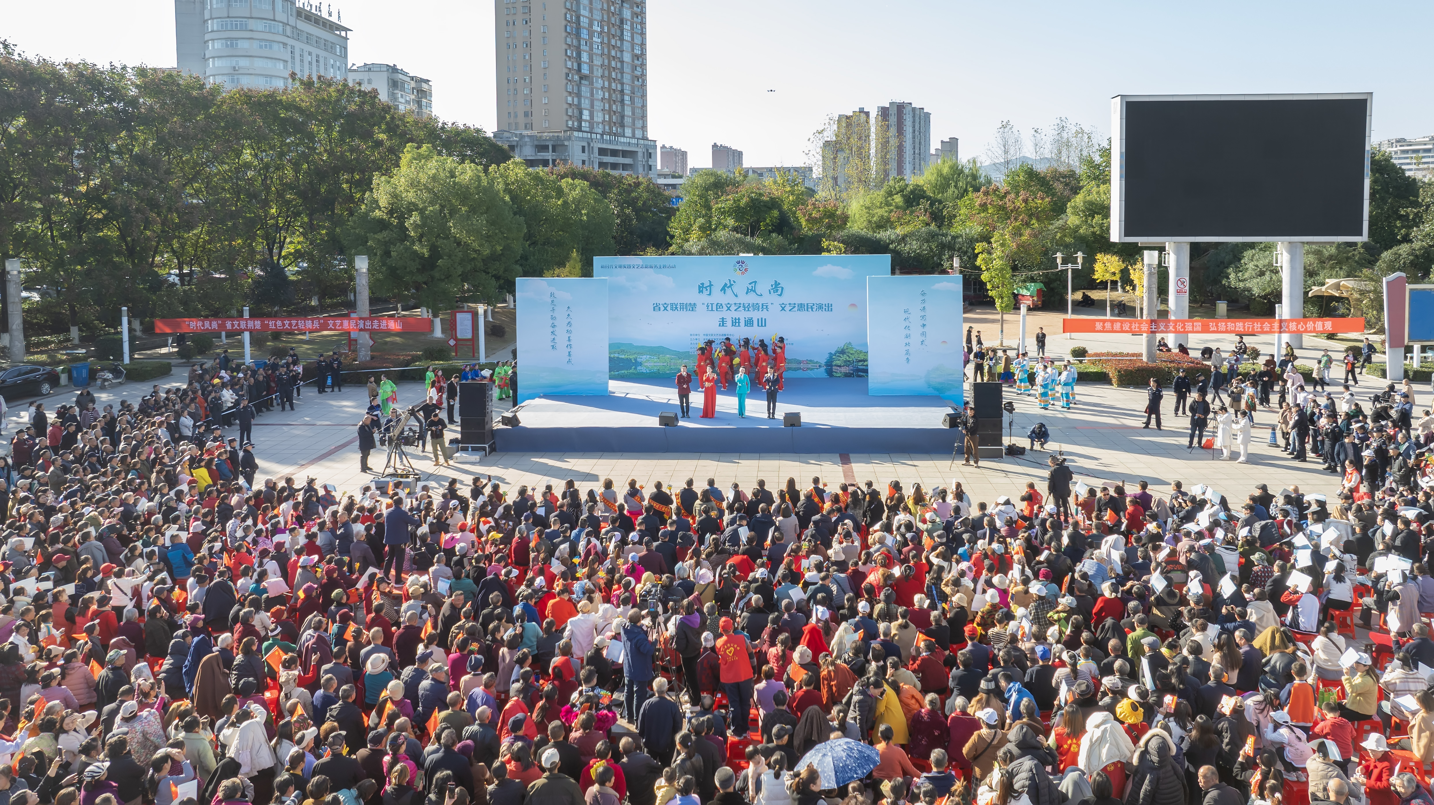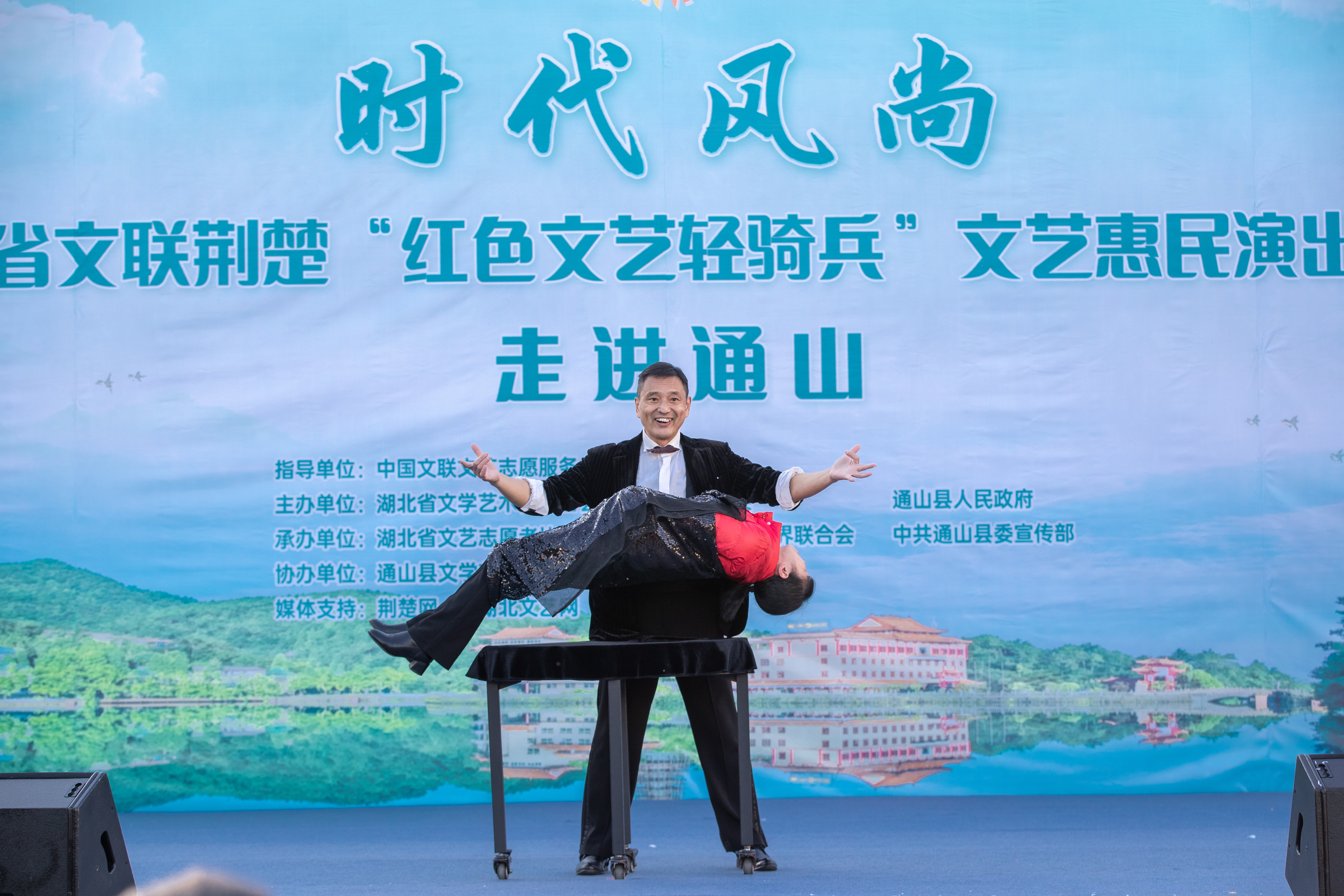 11月29日,在通山縣人民政府廣場(chǎng),一場(chǎng)別開生面的文藝演出——“時(shí)代風(fēng)尚”新時(shí)代文明實(shí)踐文藝志愿服務(wù)主題活動(dòng)暨省文聯(lián)荊楚“紅色文藝輕騎兵”文藝惠民演出,成功舉行。此次活動(dòng)不僅是一場(chǎng)藝術(shù)的盛宴,更是一次心靈的洗禮,展現(xiàn)了新時(shí)代文藝志愿者的風(fēng)采,為通山人民帶來了一場(chǎng)難忘的文化體驗(yàn),讓紅色文化在新時(shí)代煥發(fā)出新的生機(jī)與活力。