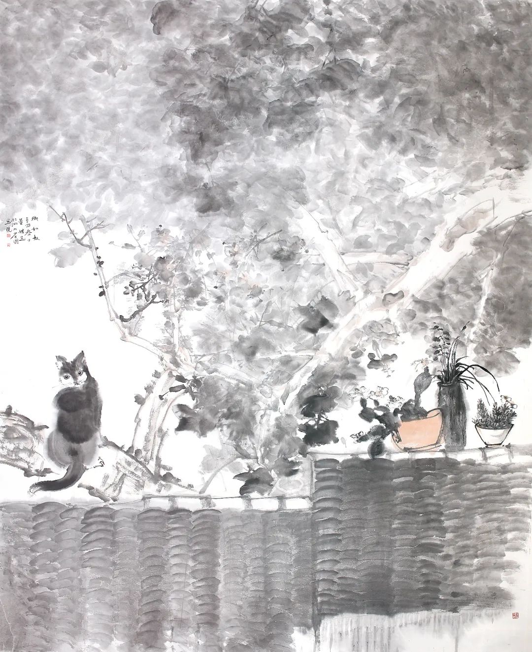 黃少牧 《聽(tīng)泉》紙本水墨 220×180cm 2024年