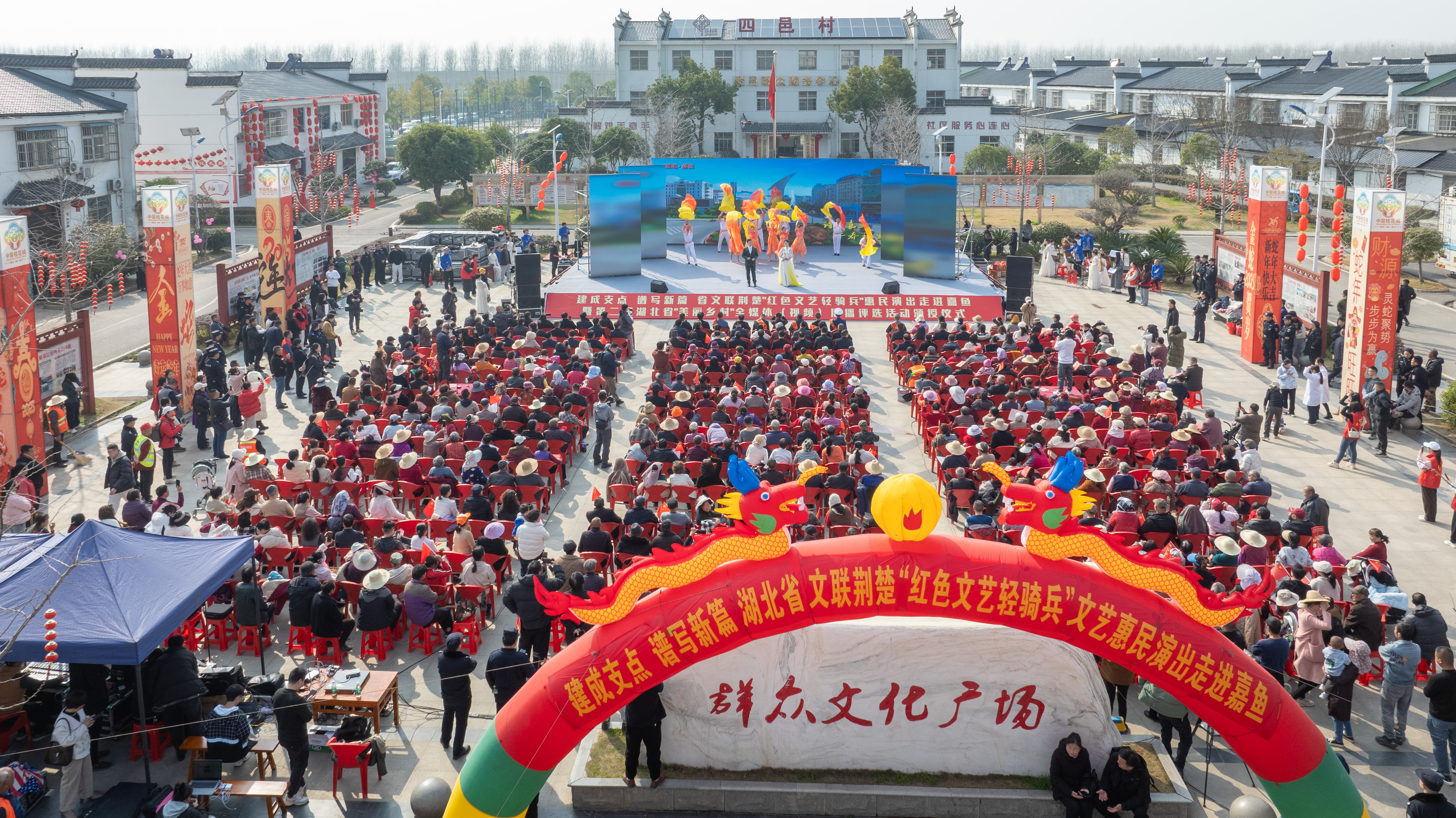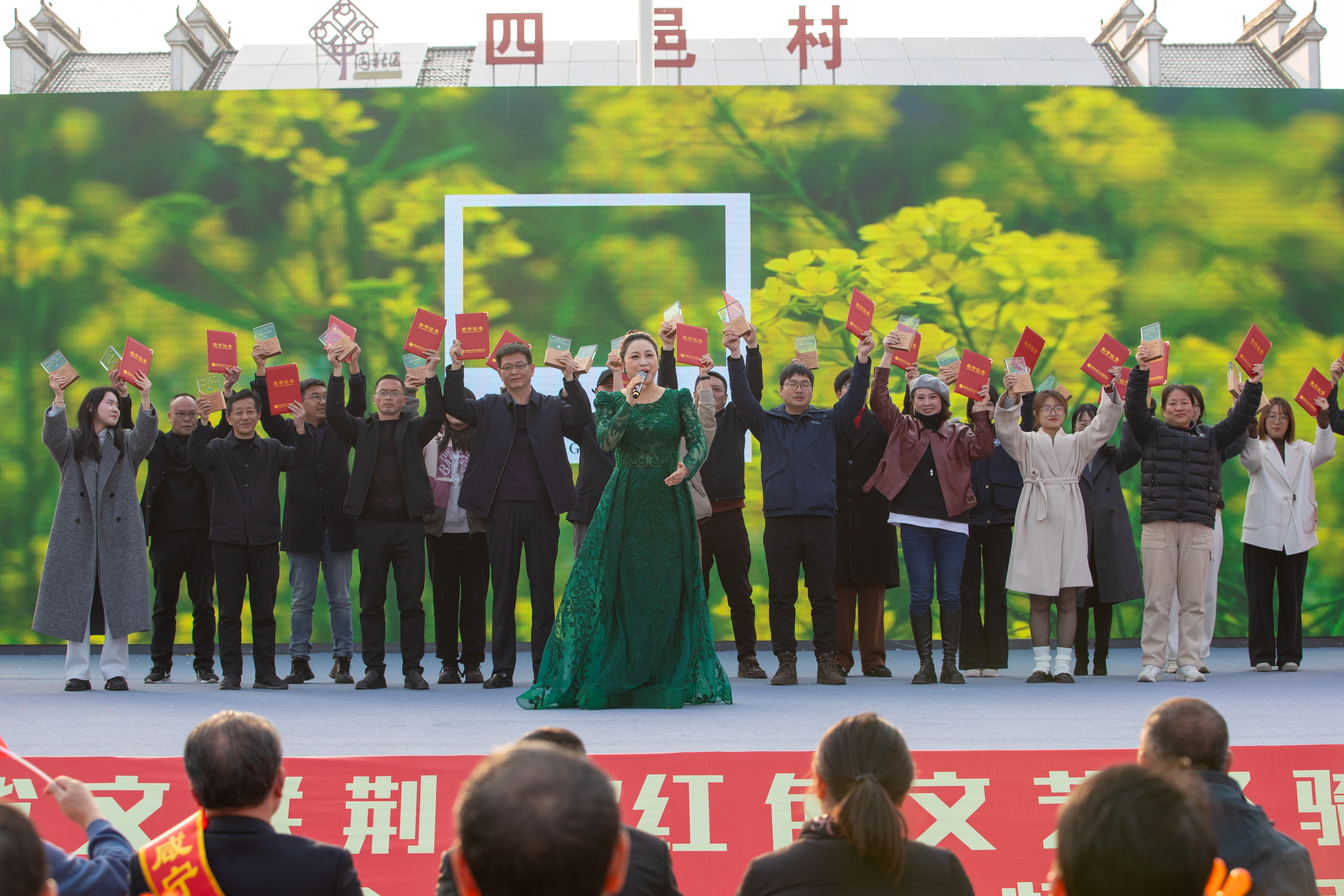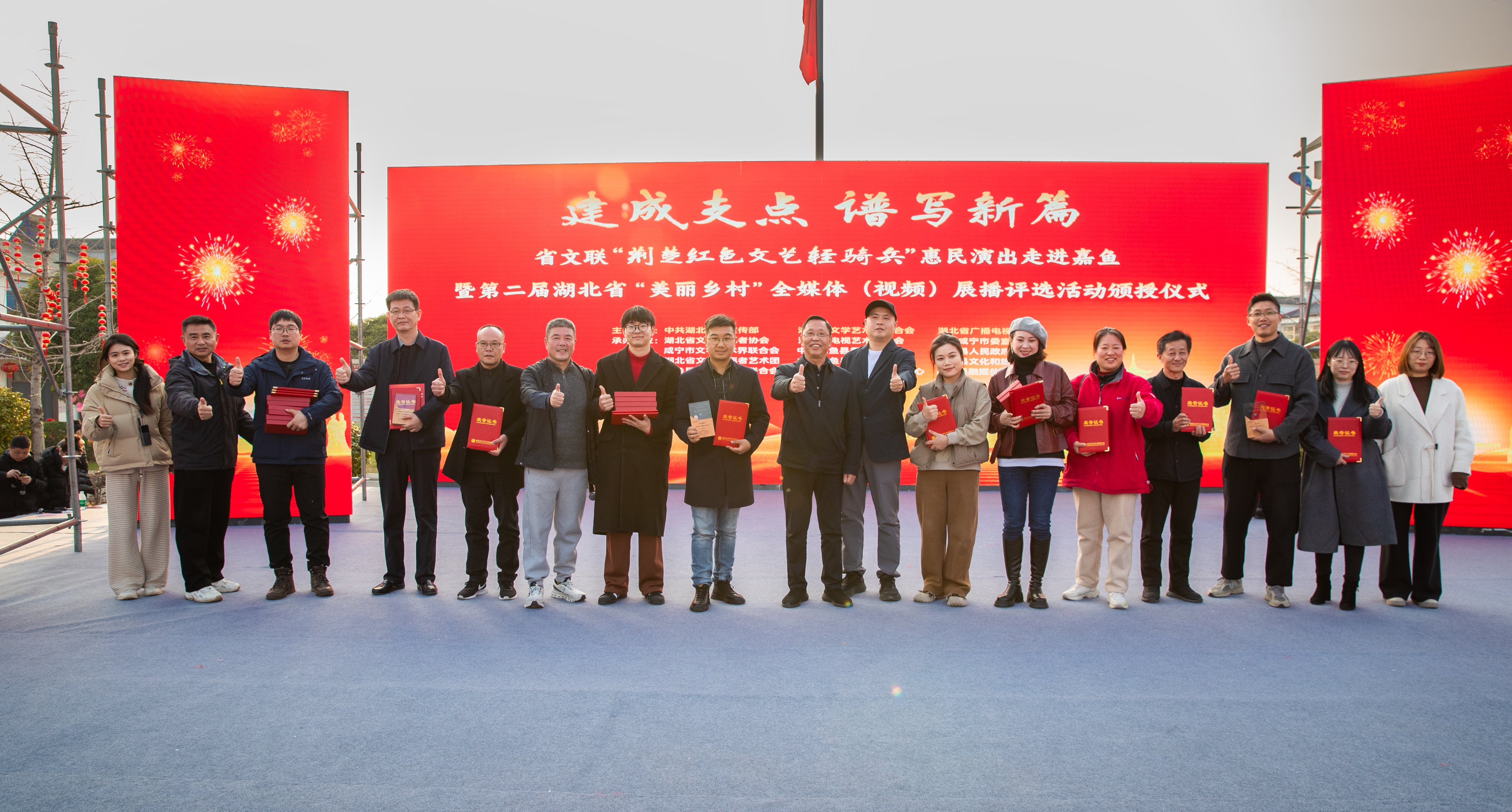 本次頒授儀式結(jié)合“建成支點(diǎn) 譜寫新篇”省文聯(lián)荊楚“紅色文藝輕騎兵”惠民演出展開,現(xiàn)場歡歌笑語,熱鬧火爆,吸引了近千名觀眾駐足觀看。