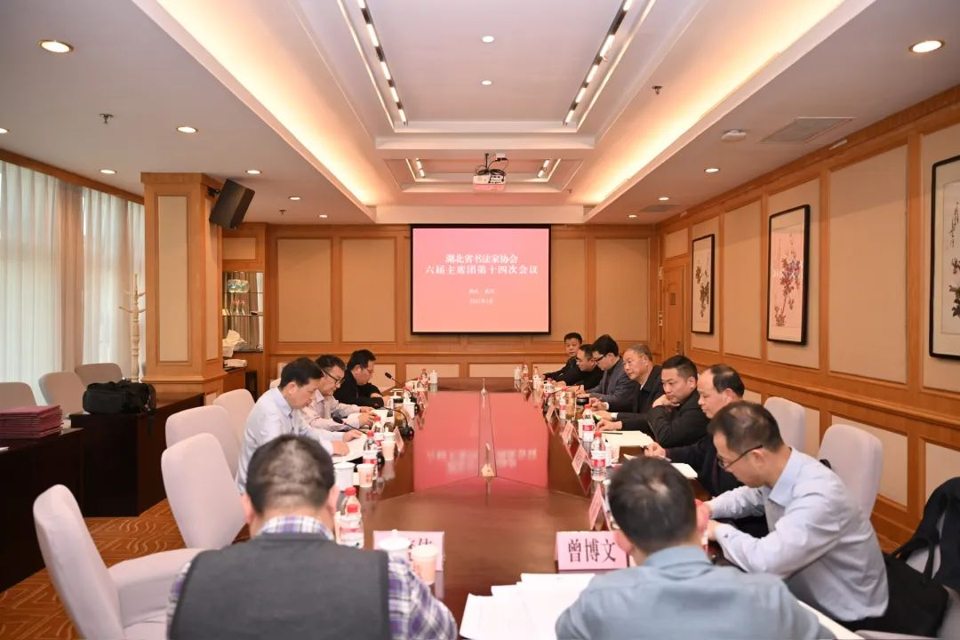 為學習貫徹習近平總書記考察湖北重要講話精神,落實中國文聯(lián)、中國書協(xié)、湖北省文聯(lián)相關會議精神,3月21日,湖北省書協(xié)召開第六屆主席團第十四次會議,省文聯(lián)二級巡視員張海旺,省文聯(lián)副主席、省書協(xié)主席孟慶星,省書協(xié)駐會副主席、秘書長李勁松,省書協(xié)副主席馬武、王勇、吳永斌、羅海東、秦龍志、蕭翰、樊利杰參加會議,會議由孟慶星主持。