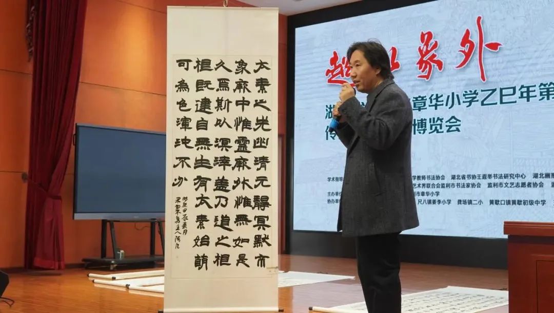 3月31日,適逢傳統(tǒng)“上巳節(jié)”,“墨潤(rùn)荊楚”鄉(xiāng)村書(shū)法潮系列活動(dòng)之第九屆“章華蘭亭會(huì)”上巳雅集在監(jiān)利縣章華小學(xué)舉行。中國(guó)書(shū)協(xié)篆書(shū)專委會(huì)委員、培訓(xùn)中心教授劉聚森,監(jiān)利市政協(xié)主席廖和平,市人民政府副市長(zhǎng)呂梁彬等領(lǐng)導(dǎo)和嘉賓出席活動(dòng)。