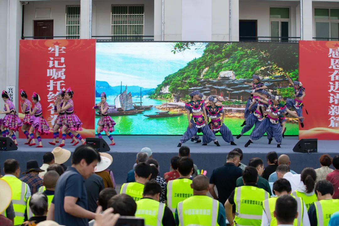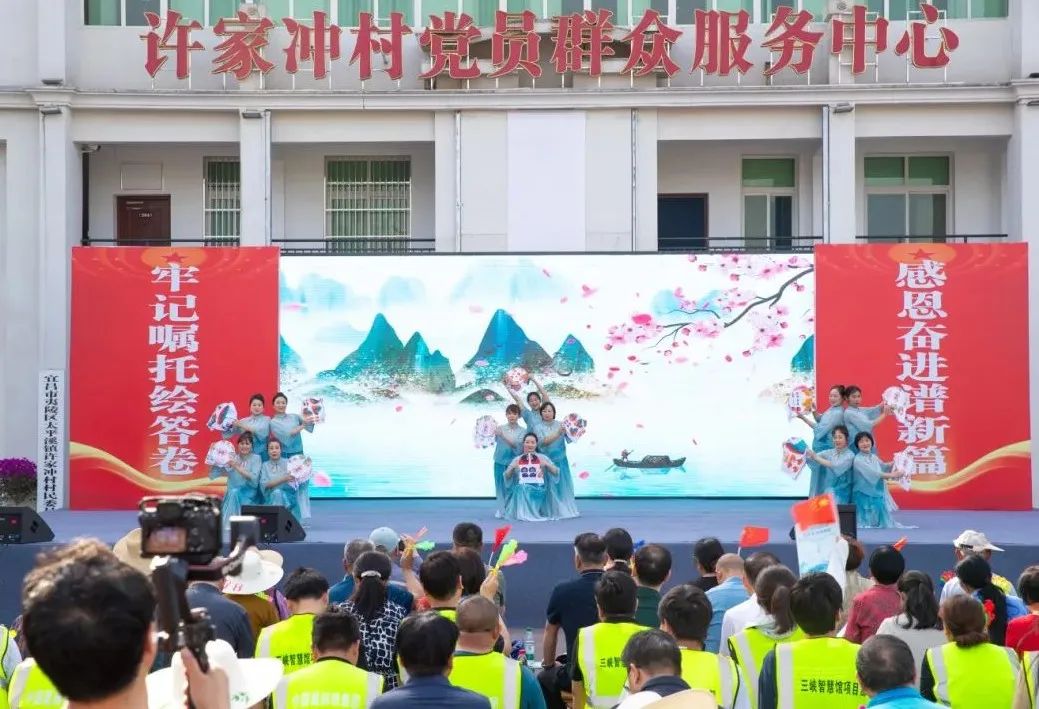 三峽大壩筑偉業(yè),夷陵山水春意濃。在被稱為“壩區(qū)庫首第一村”的夷陵許家沖活動現(xiàn)場,由湖北省最美文藝志愿者操奕恒帶來的歌曲《中國大三峽》帶著觀眾走進美麗雄偉的大三峽,重溫習近平總書記當年到訪移民村的深情與厚愛,展現(xiàn)了大國重器的雄偉。