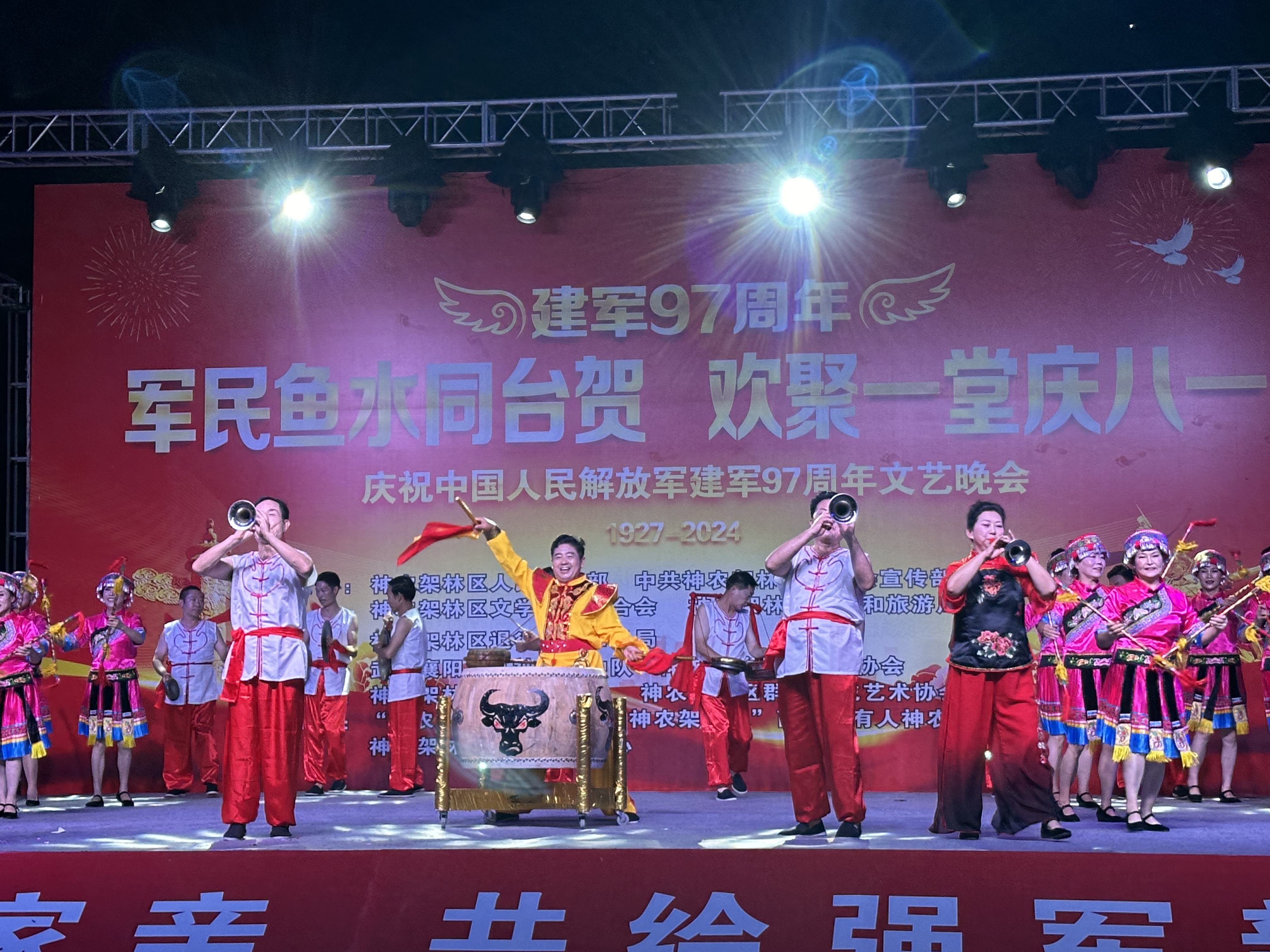 6月29日晚上,聯(lián)合組織部、宣傳部、統(tǒng)戰(zhàn)部、總工會(huì)等10個(gè)部門(mén)在松柏鎮(zhèn)體育廣場(chǎng)聯(lián)合舉辦慶祝中國(guó)共產(chǎn)黨誕生103周年文藝演出,文聯(lián)邀請(qǐng)宜昌管樂(lè)團(tuán)來(lái)林區(qū)演出,現(xiàn)場(chǎng)觀眾達(dá)1200余人。